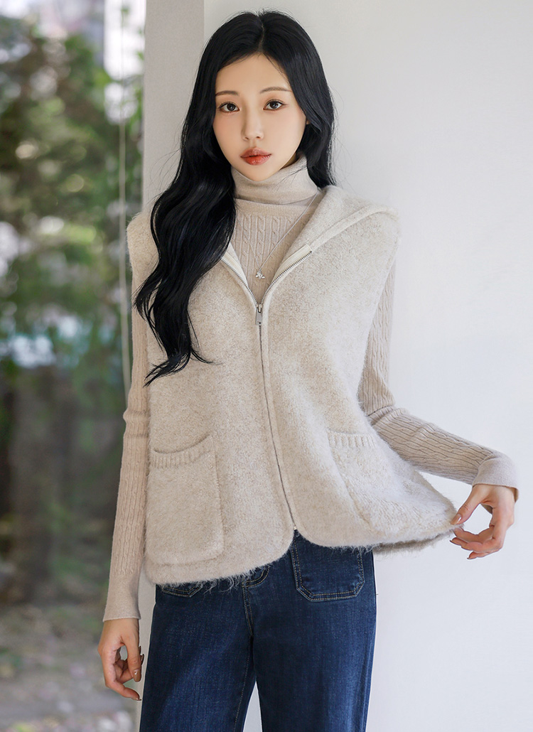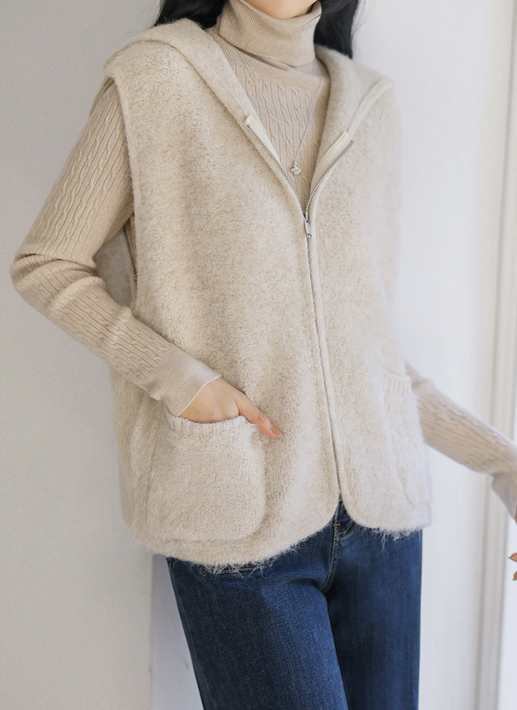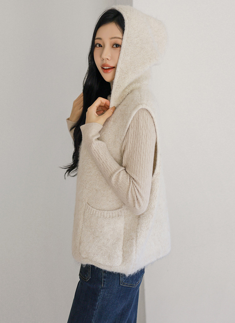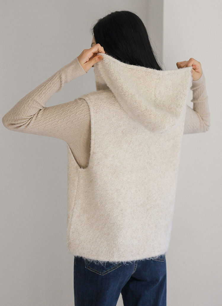 [THE ONME] ソフトタッチウールブレンドニットフード付きベストvt43437