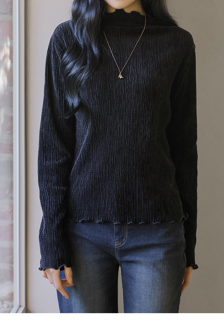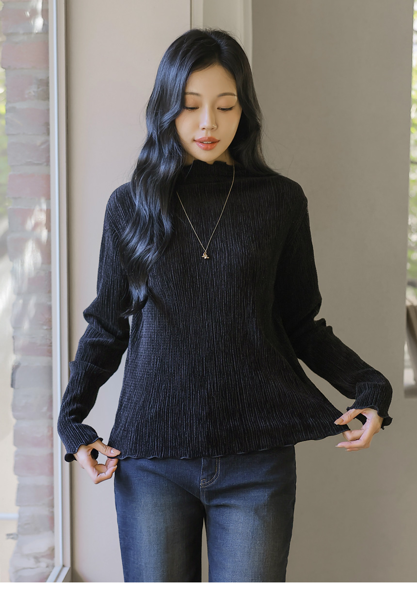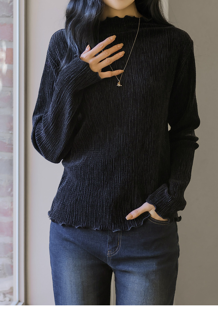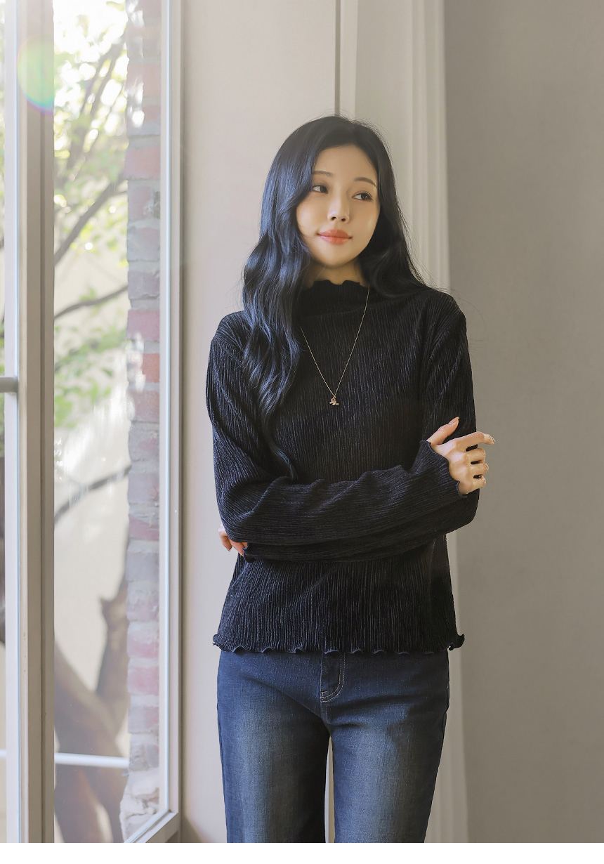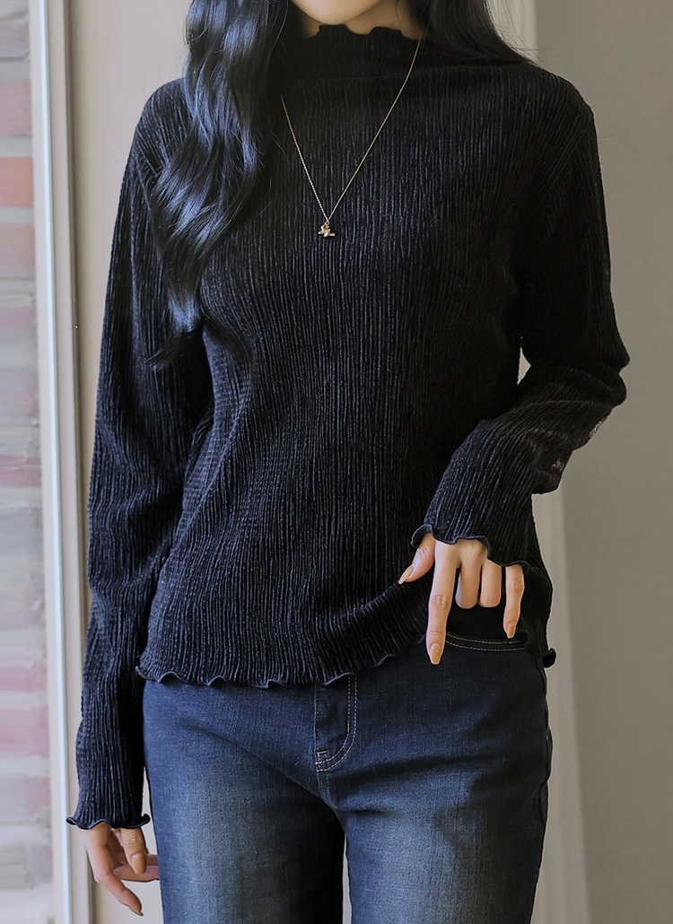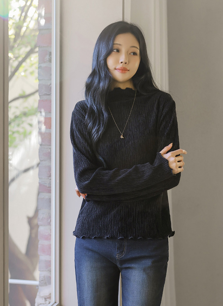 [THE ONME] ベルベットプリーツメローステッチハイネックプルオーバー ts43455
