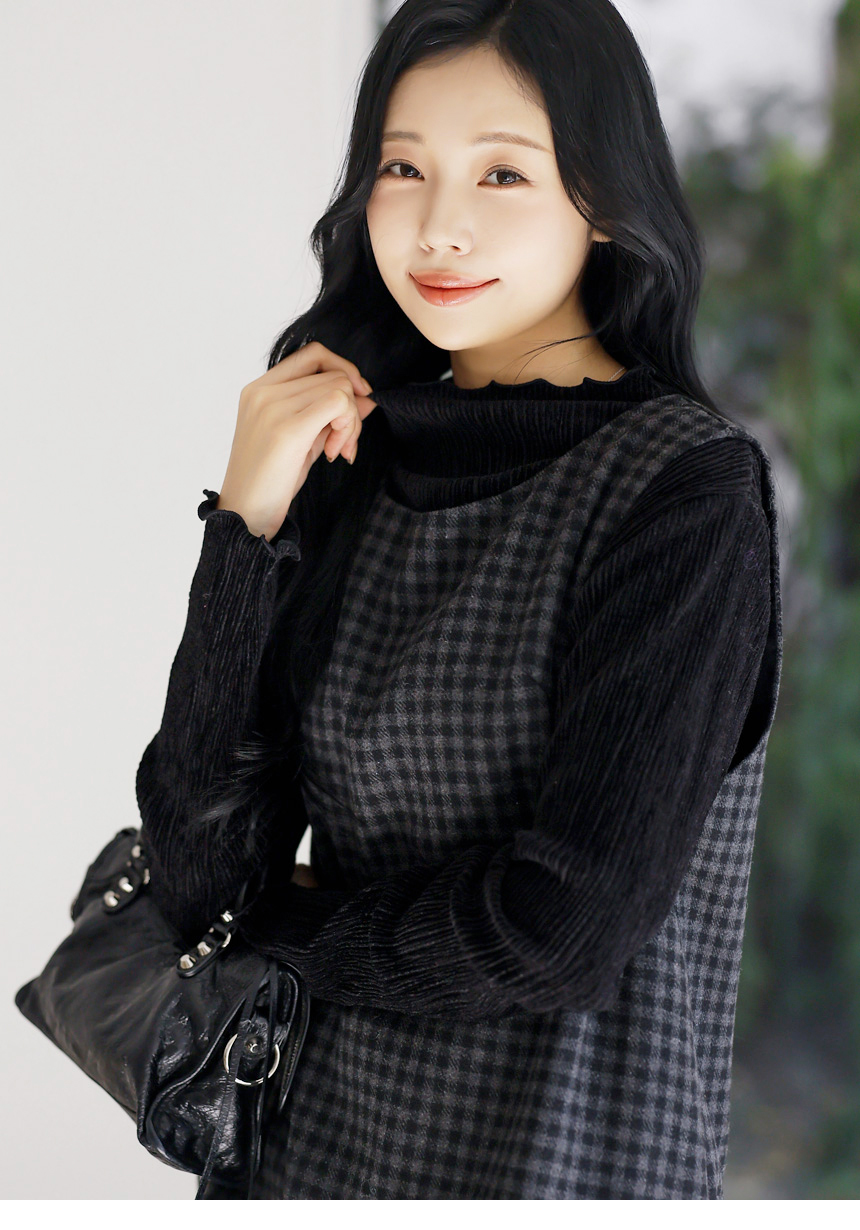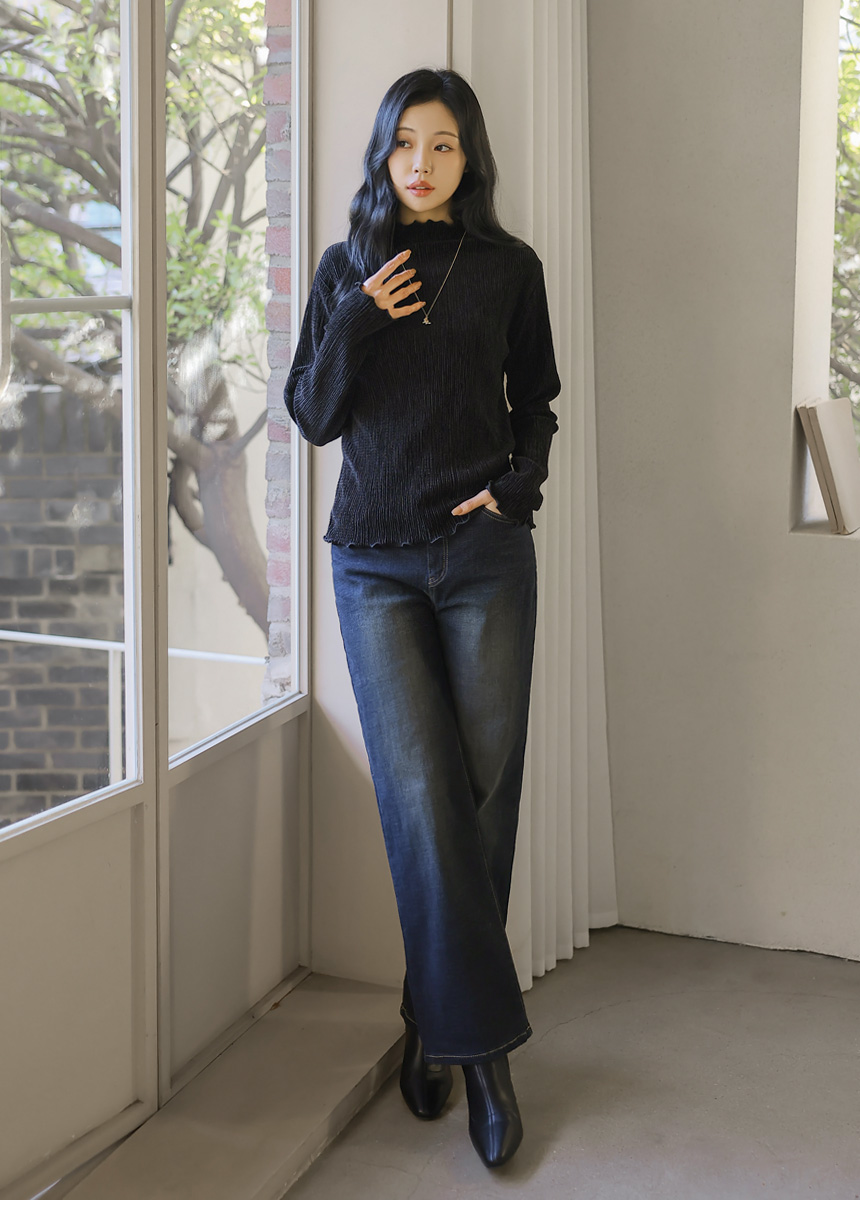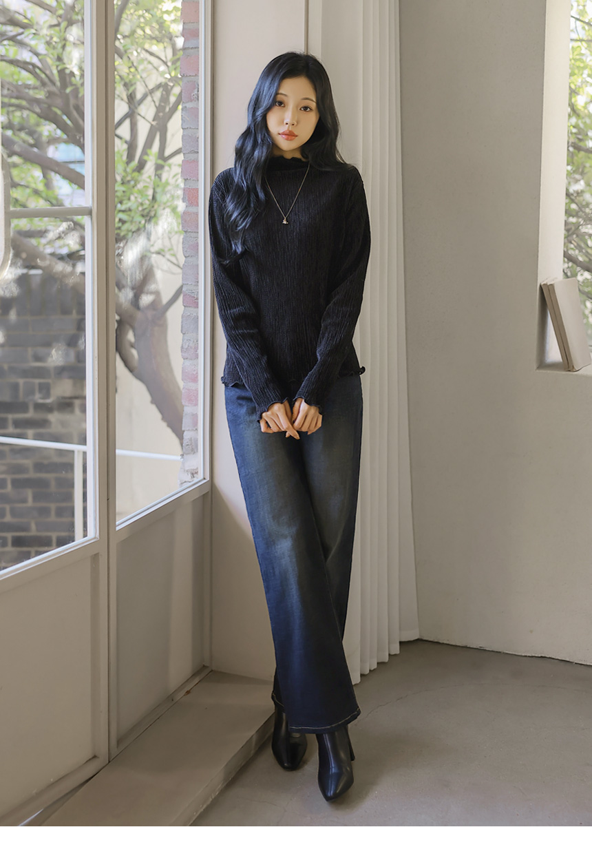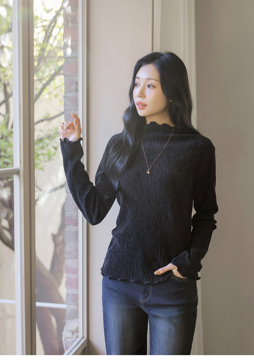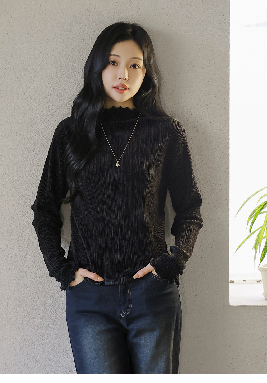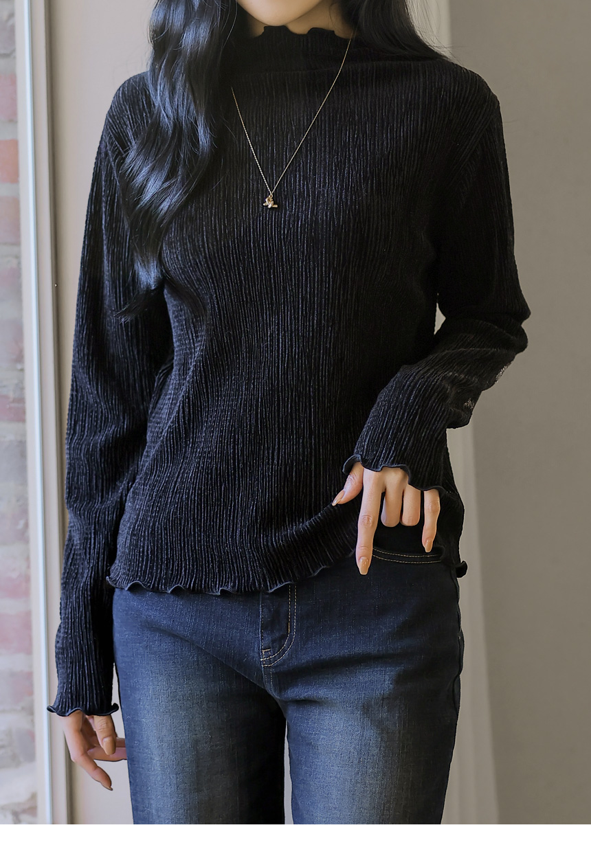 [THE ONME] ベルベットプリーツメローステッチハイネックプルオーバー ts43455