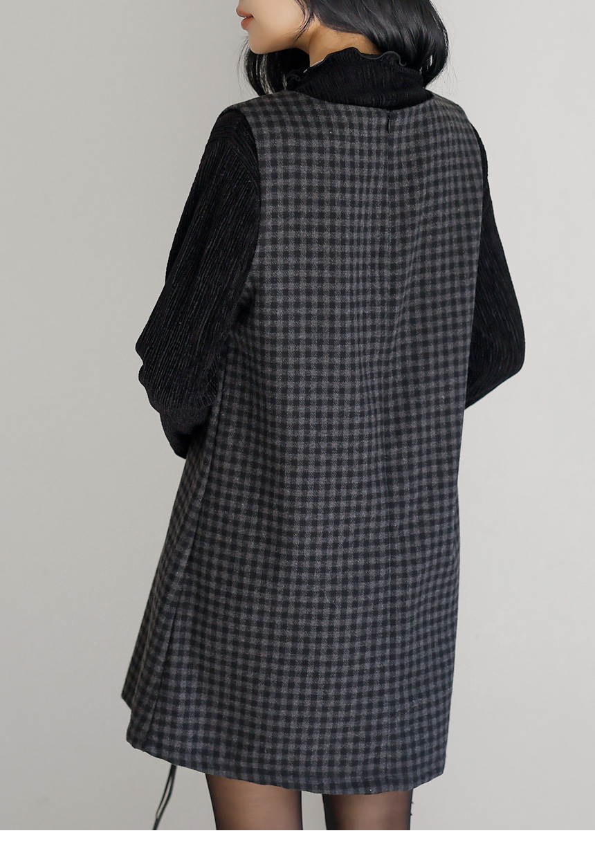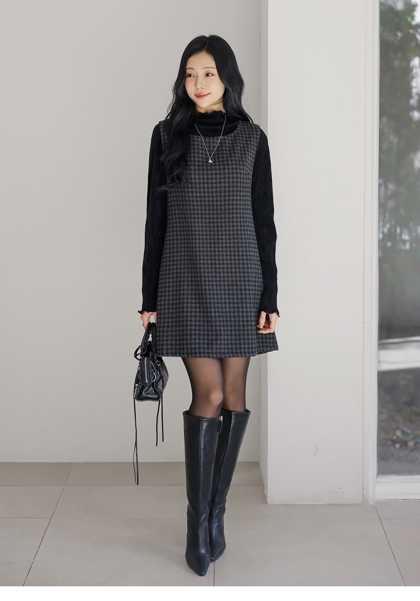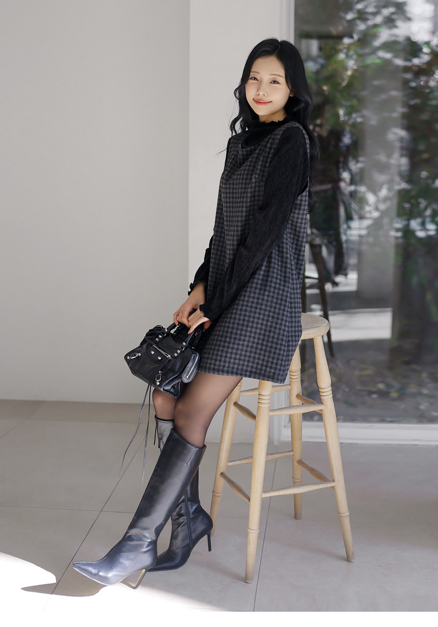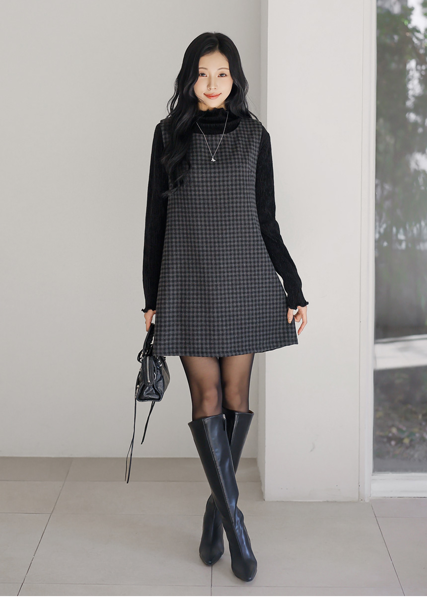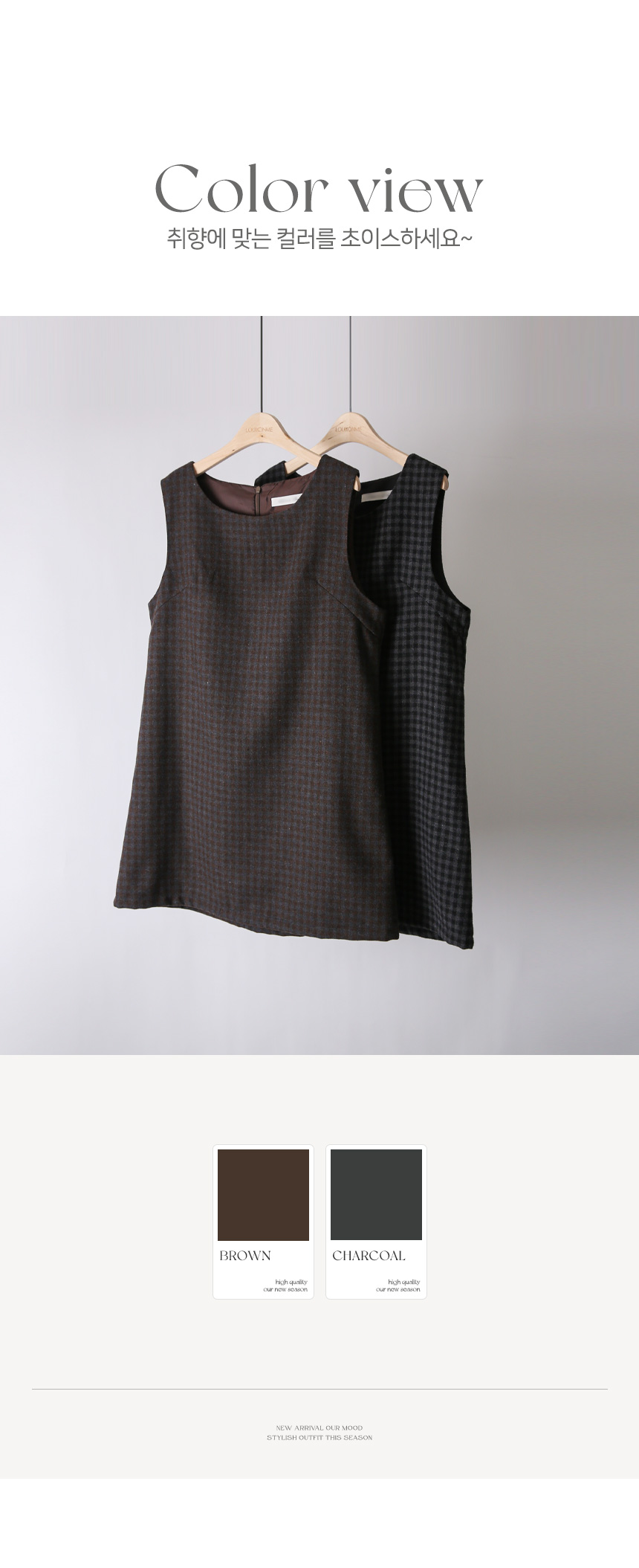 A라인 실루엣의 체크 미니 나시 원피스예요 :)