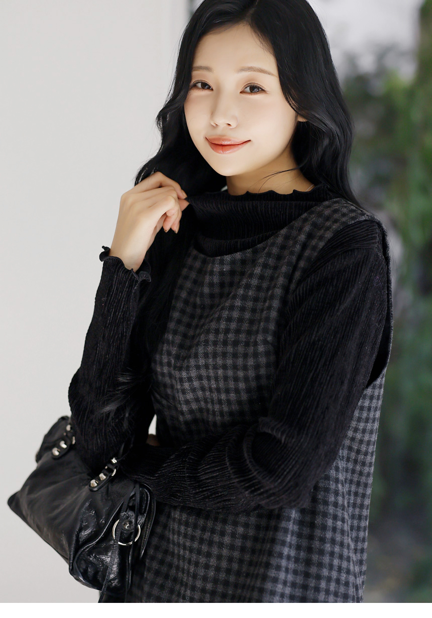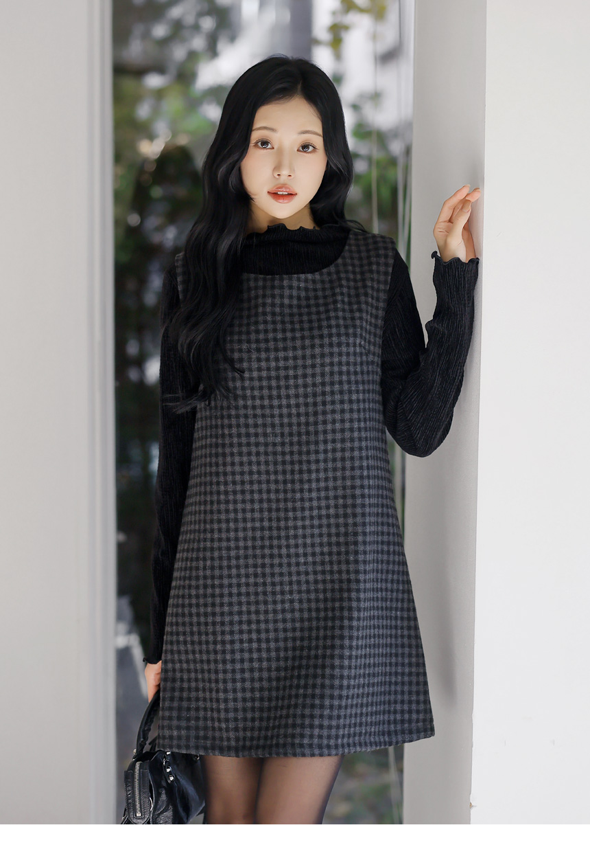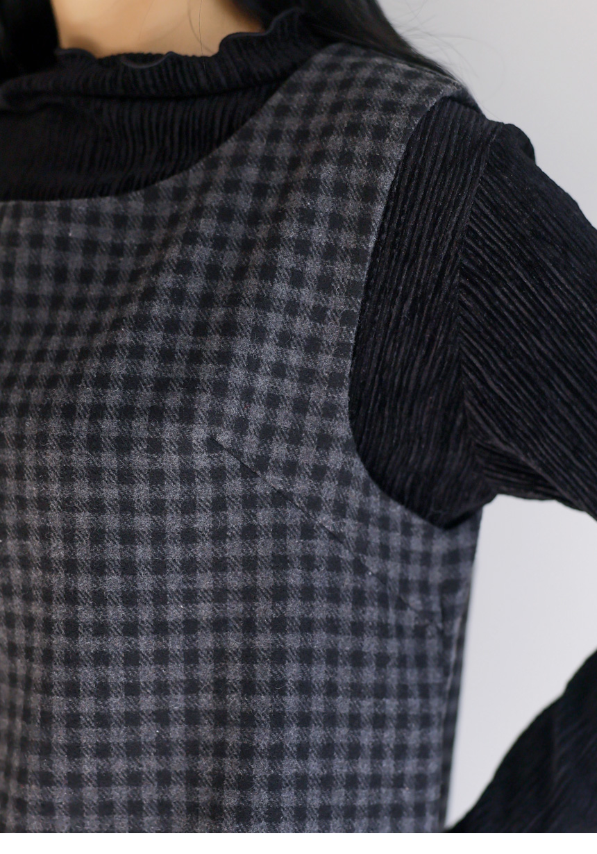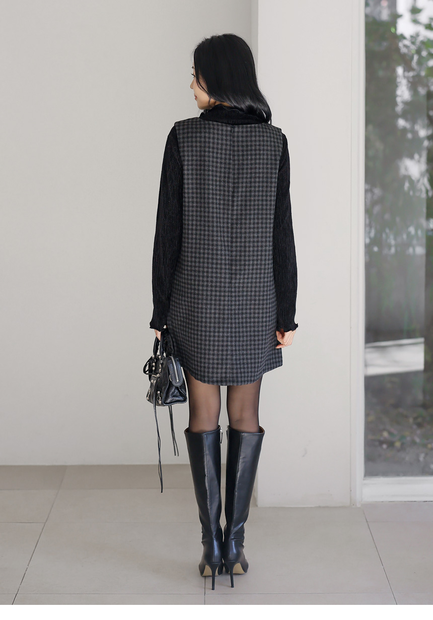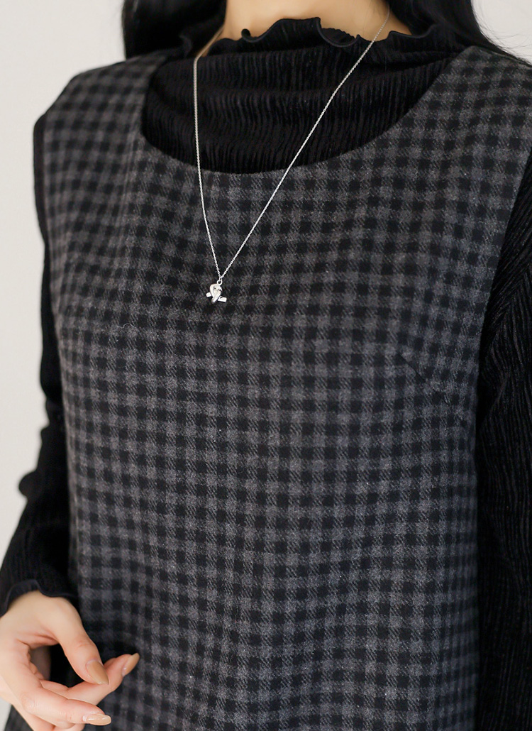 A라인 실루엣의 체크 미니 나시 원피스예요 :)