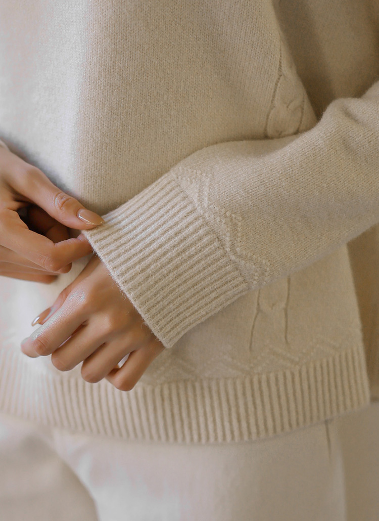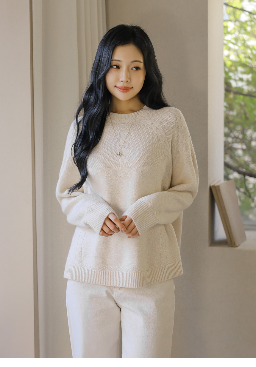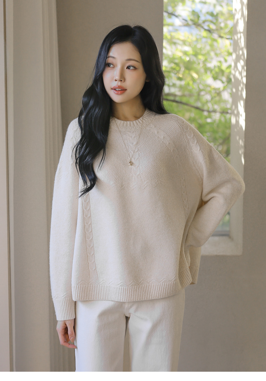 잔잔한 꽈배기 짜임이 곳곳에 은은한 포인트를 더해