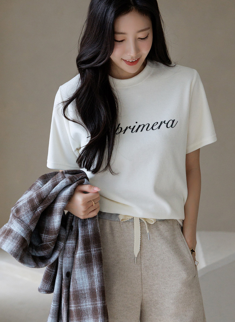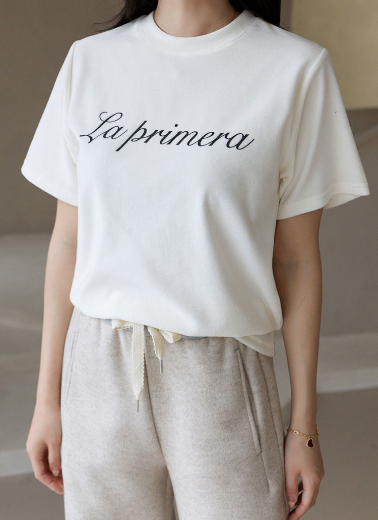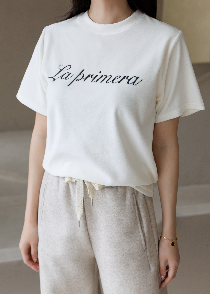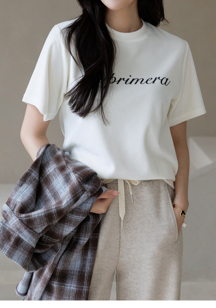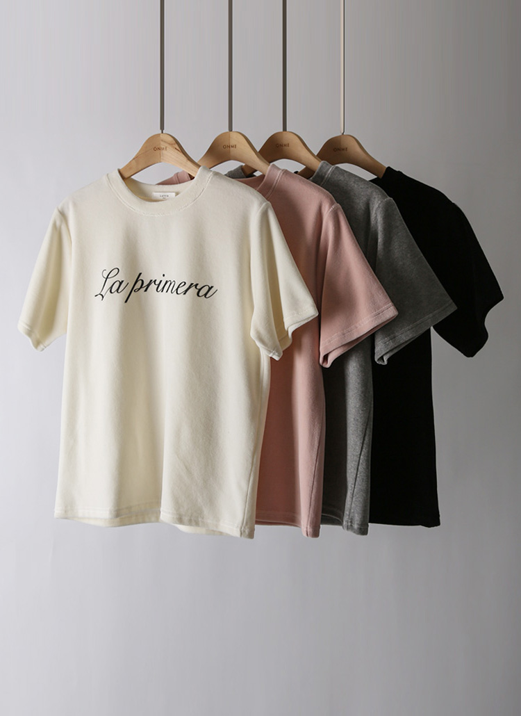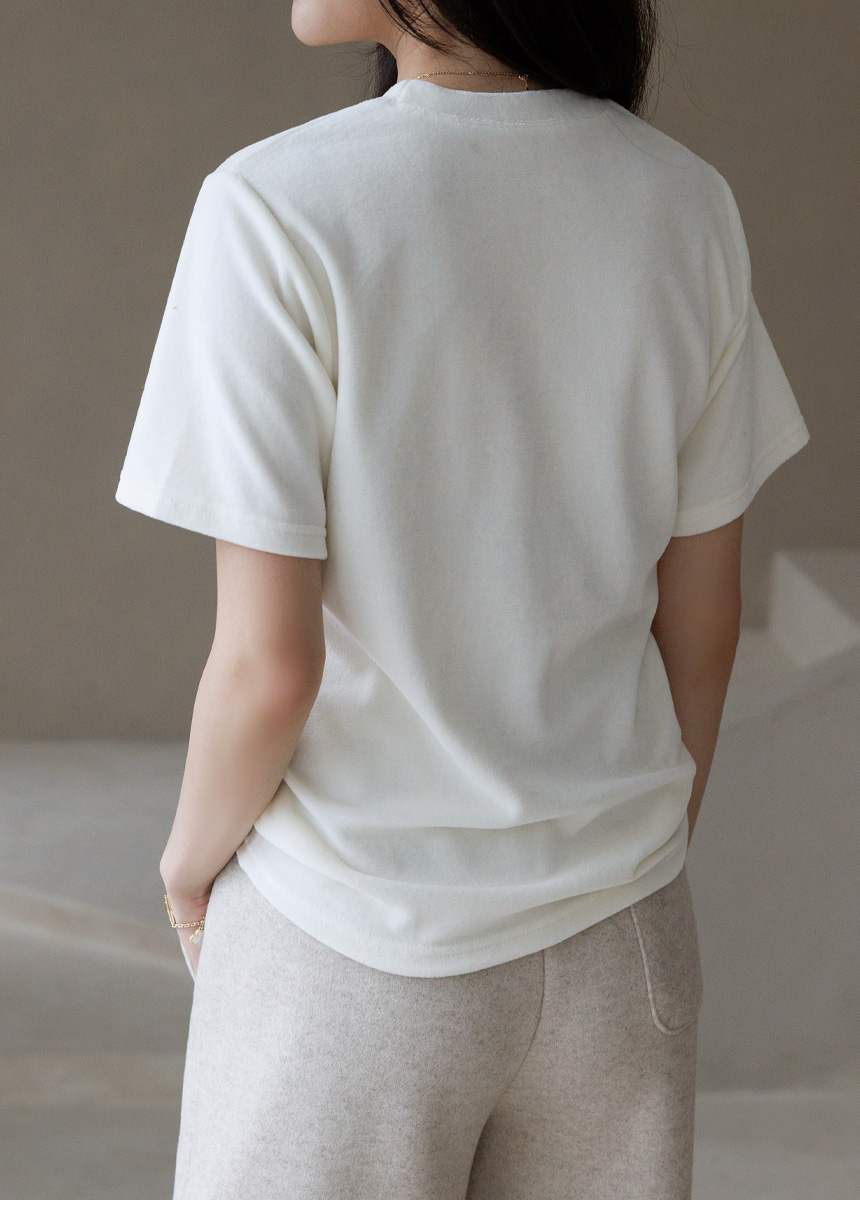 은은하게 고급스러운 벨로아 텍스쳐가 돋보이는 반팔 티셔츠에요