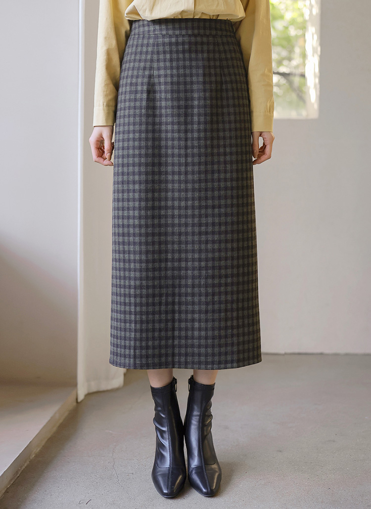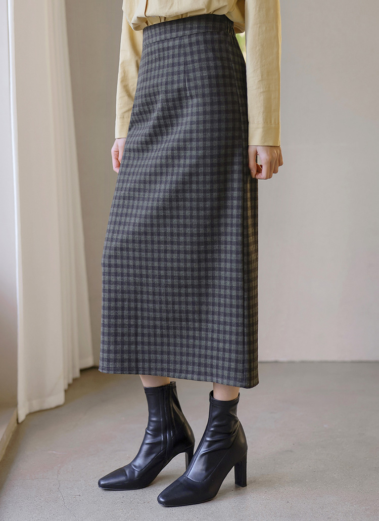 [THE ONME] ギンガムチェックロングスカート sk43485
