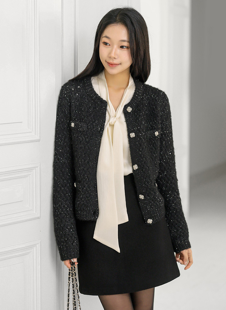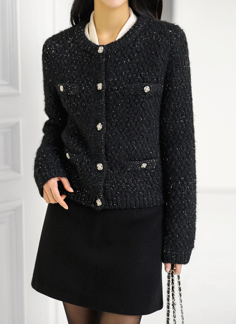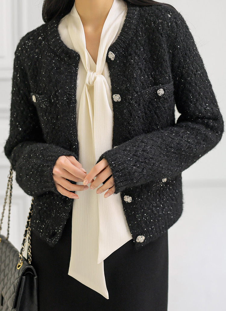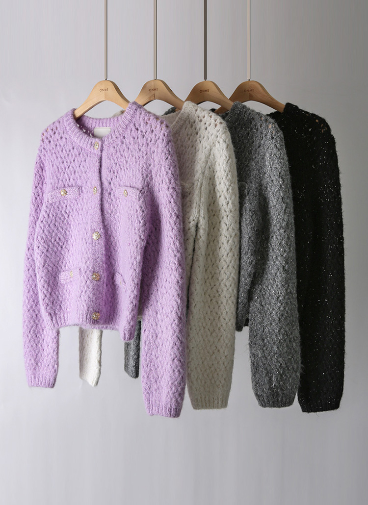 スパンコール付きヘアリーウールニットカーディガン cd43521