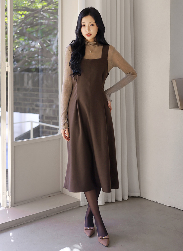 • [THE ONME] スクエアネック タックフレア ジャンパースカート op43530