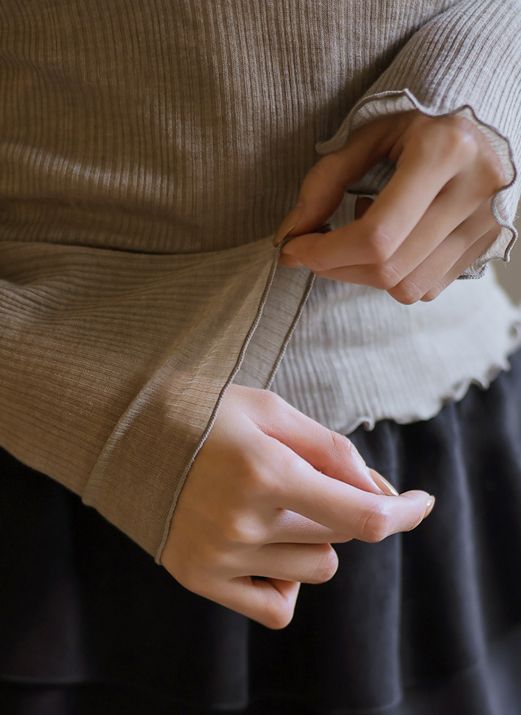 여리여리한 분위기를 연출해주는 반목 티셔츠예요 :)