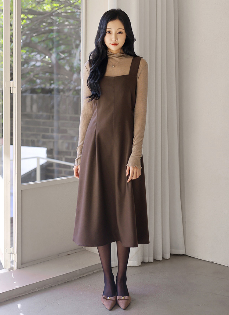 [THE ONME] スクエアネック タックフレア ジャンパースカート op43530