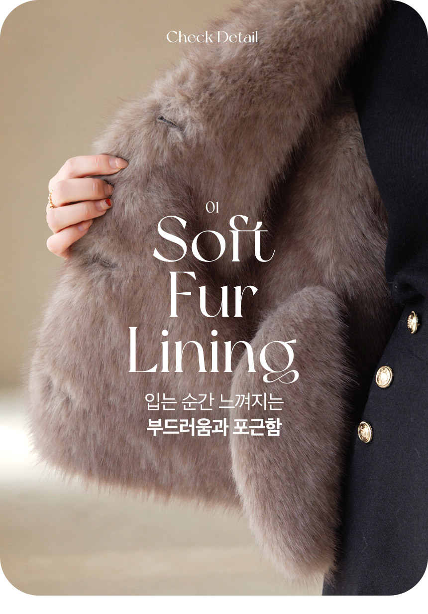 풍성하고 윤기있는 퍼를 트리밍해 카라와 소매 부분이 밖으로 보여지며