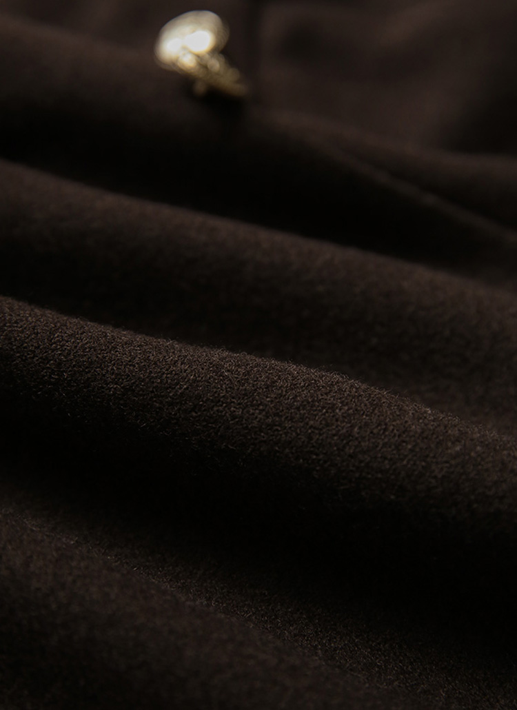 골드 버튼이 허리 라인을 단정하게 잡아주면서