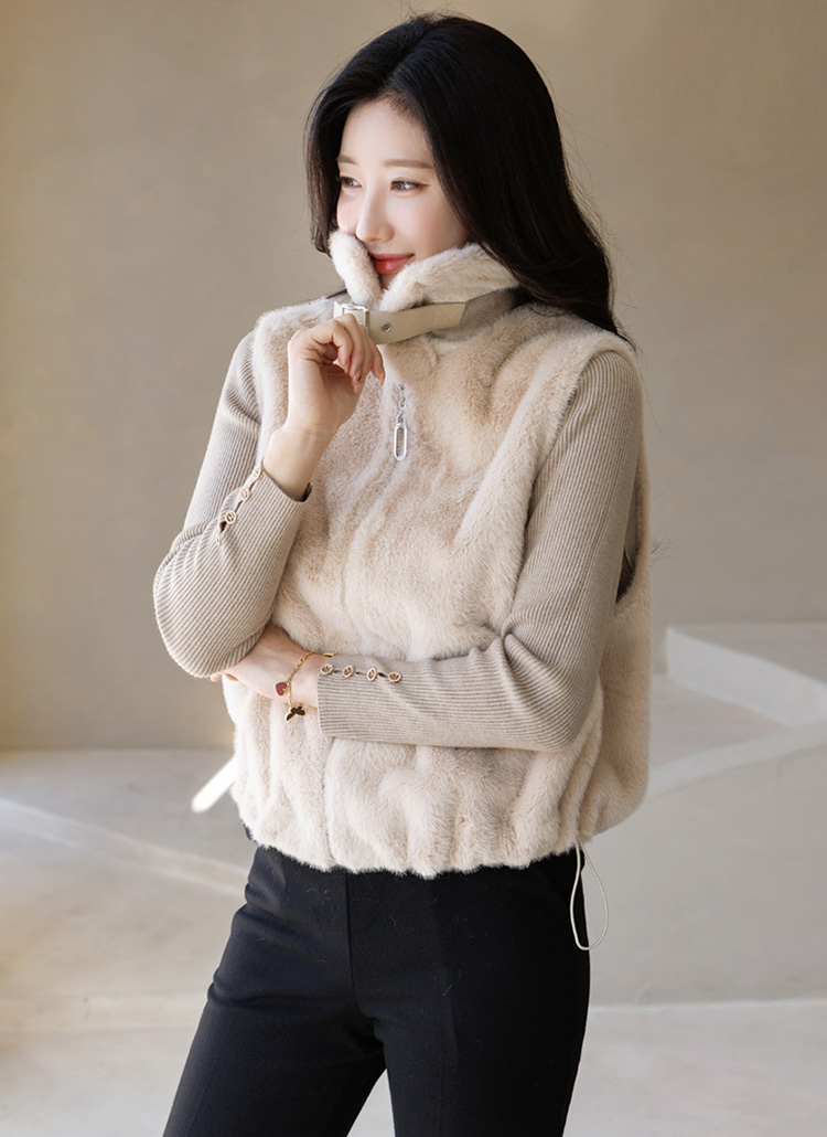 【4色展開】ふんわりフェイクファー ベルトポイントベストvt43596