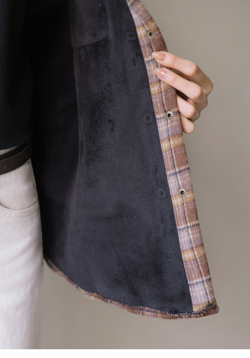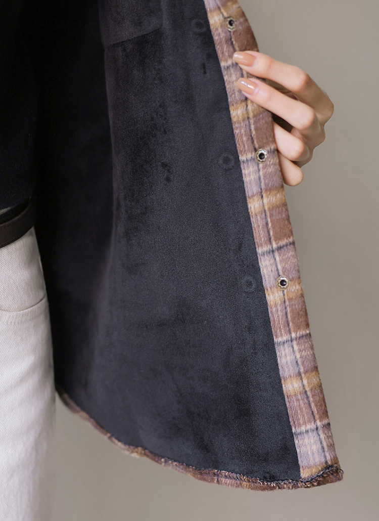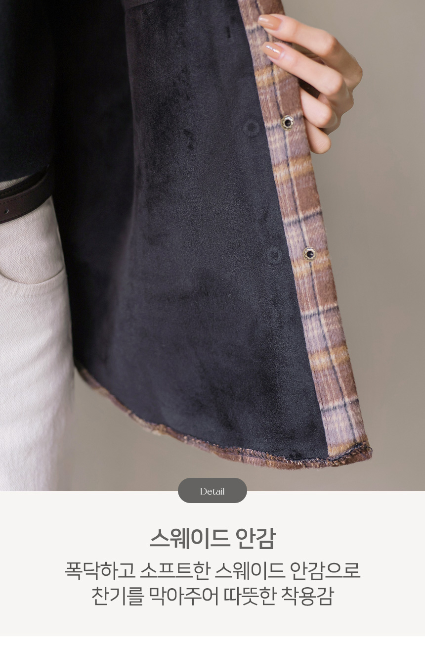 헤어리한 체크 패턴에 벨벳 스웨이드 안감이 더해져