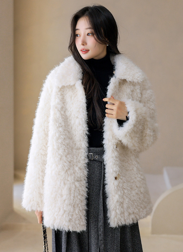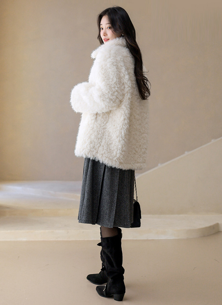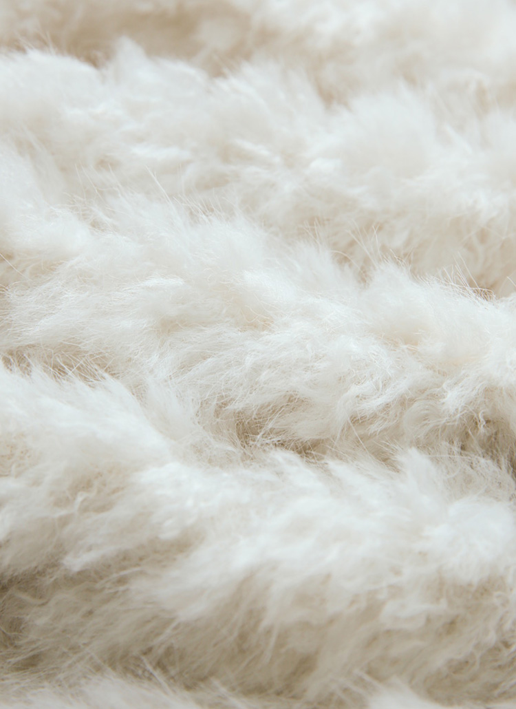 울이 80% 블렌딩 된 고급소재에 풍성한 퍼 텍스쳐로 표현되어