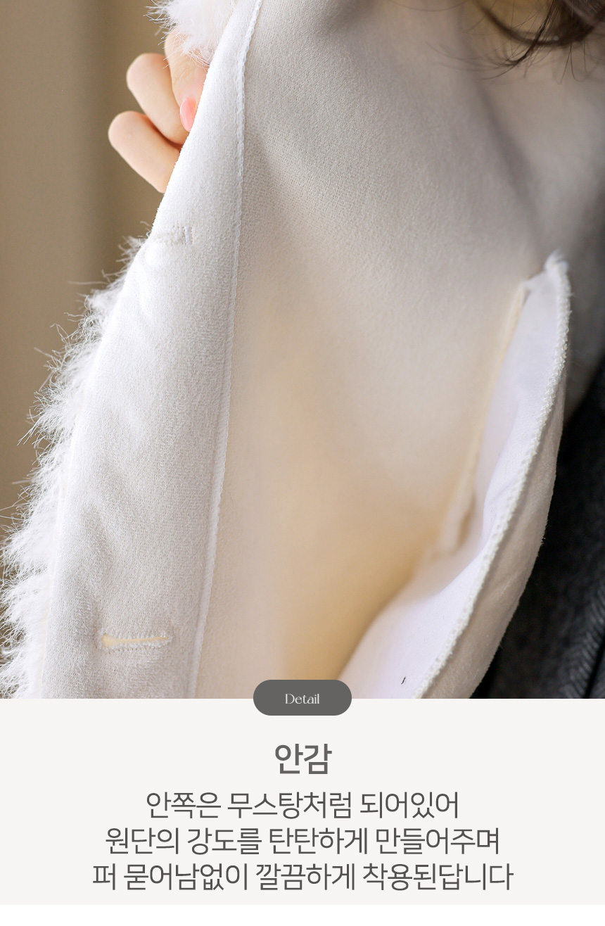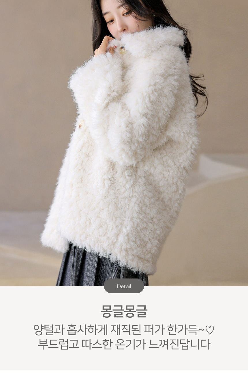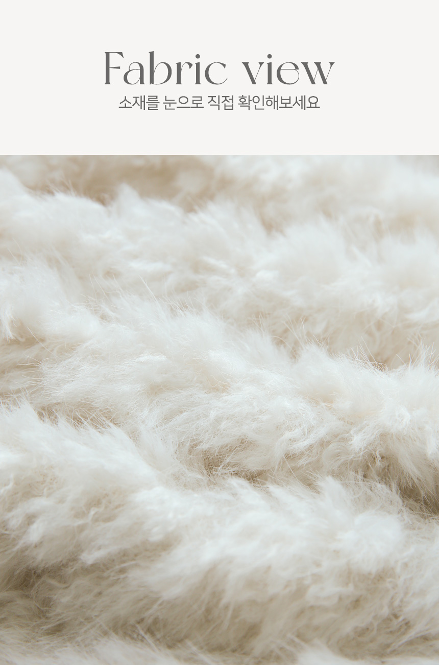 울이 80% 블렌딩 된 고급소재에 풍성한 퍼 텍스쳐로 표현되어