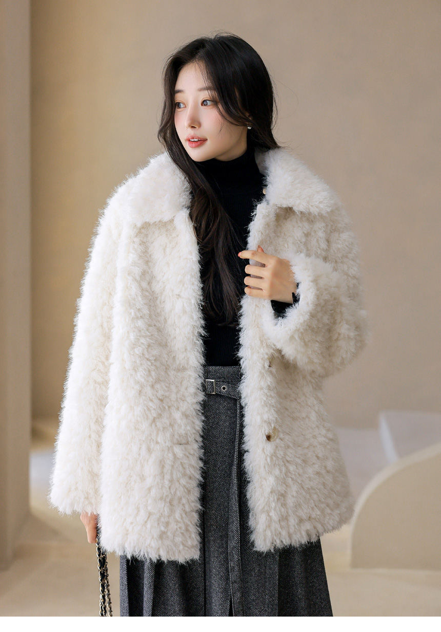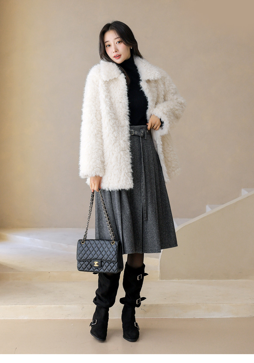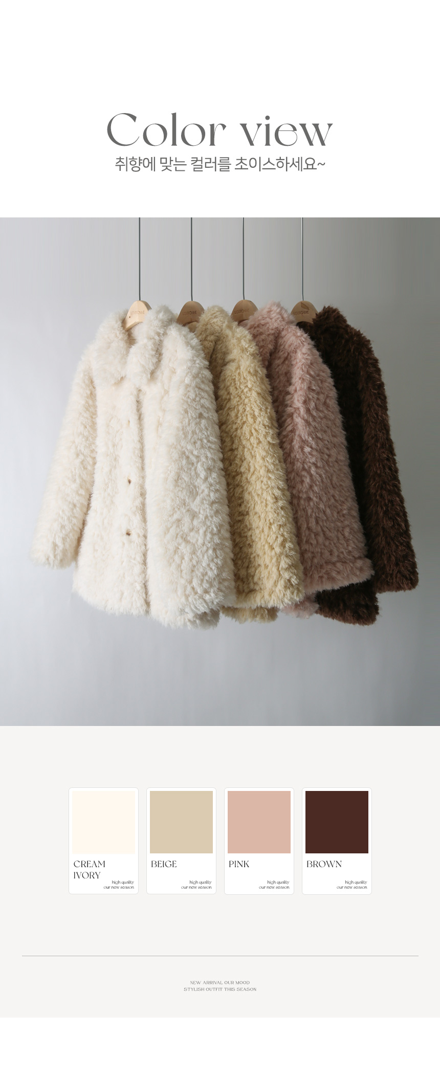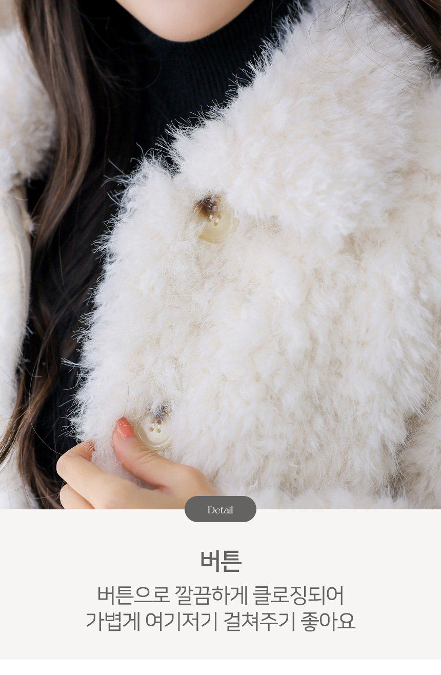 울이 80% 블렌딩 된 고급소재에 풍성한 퍼 텍스쳐로 표현되어