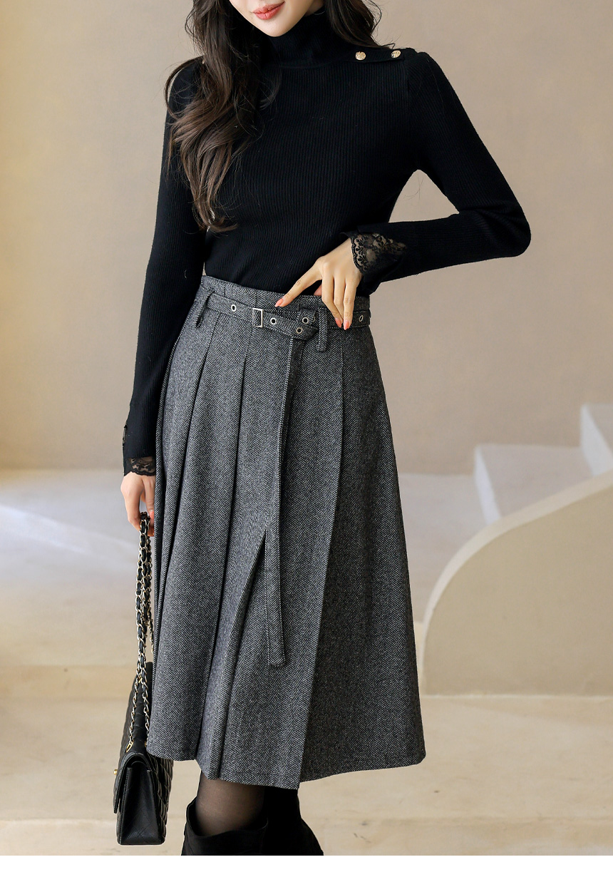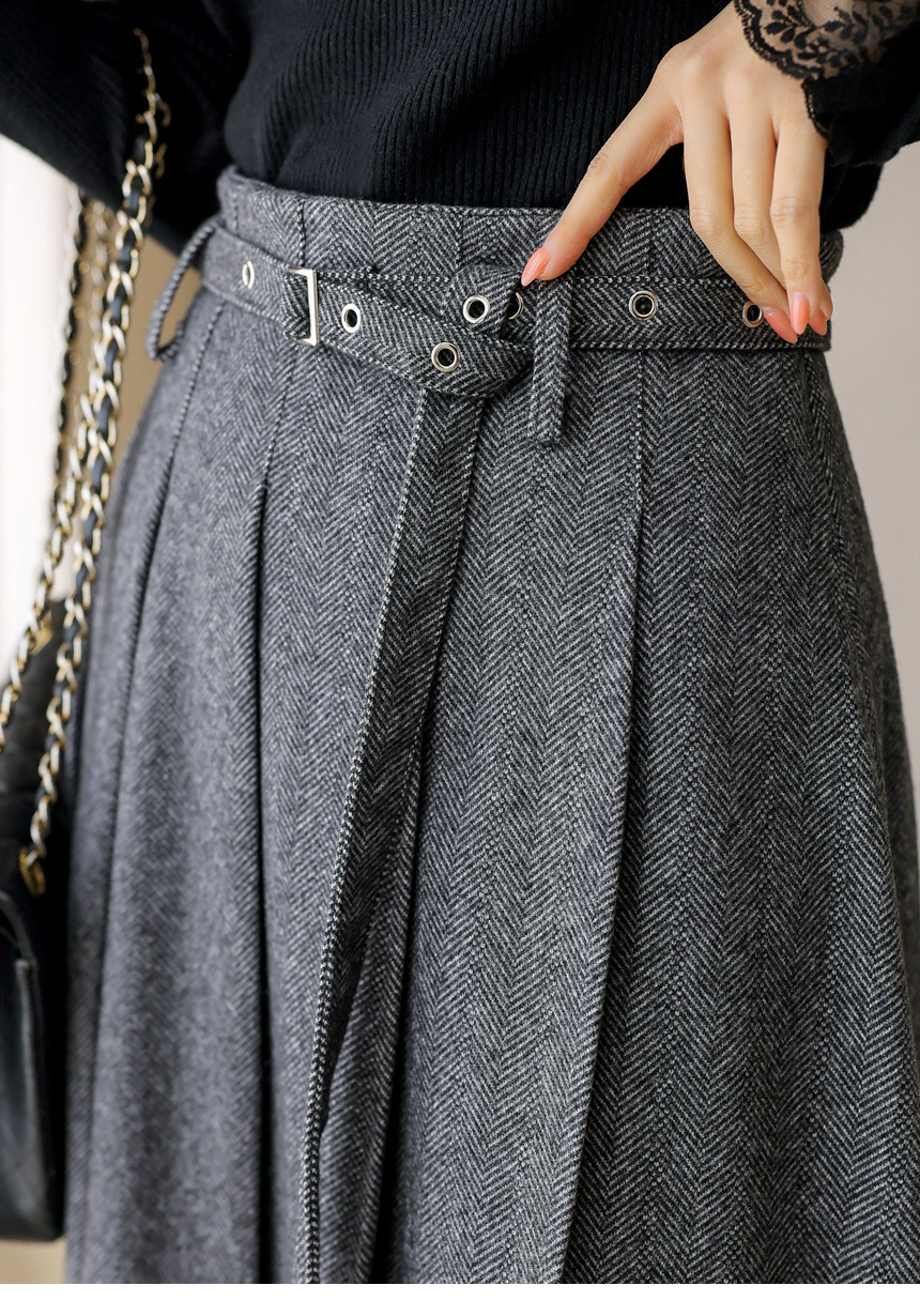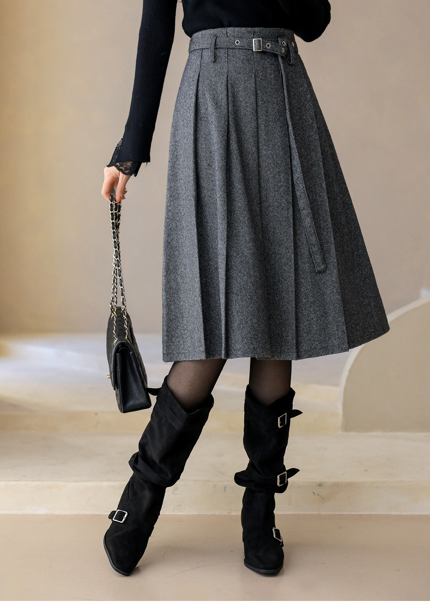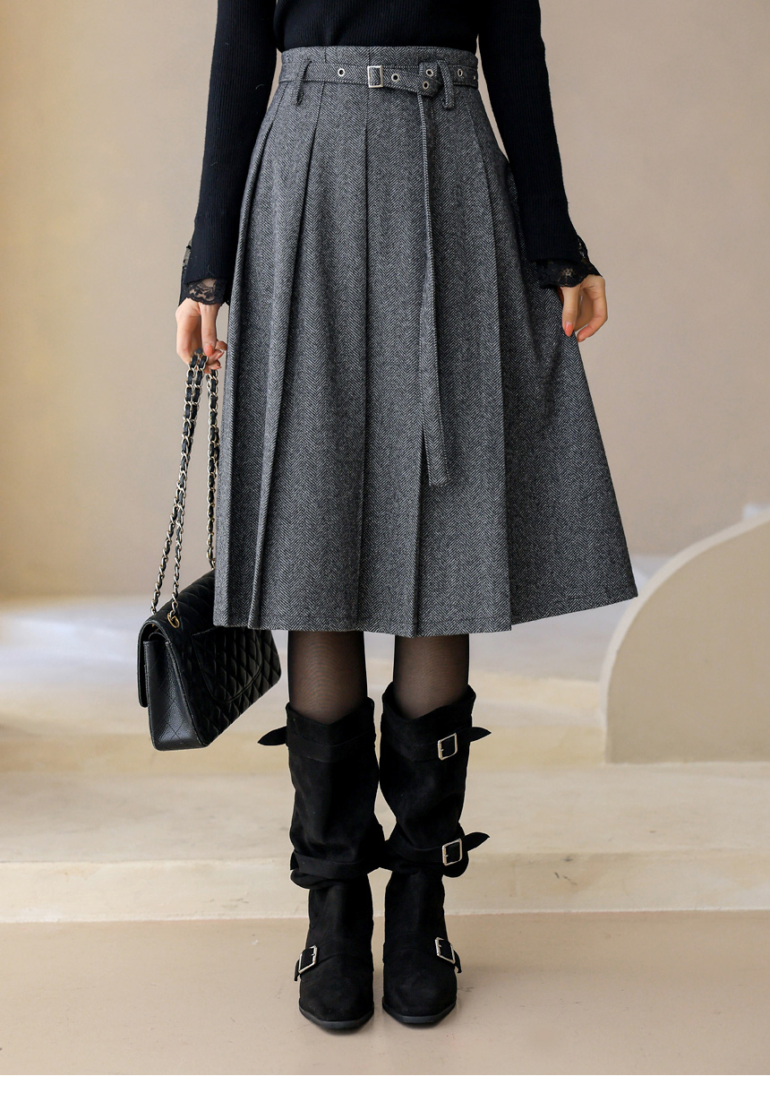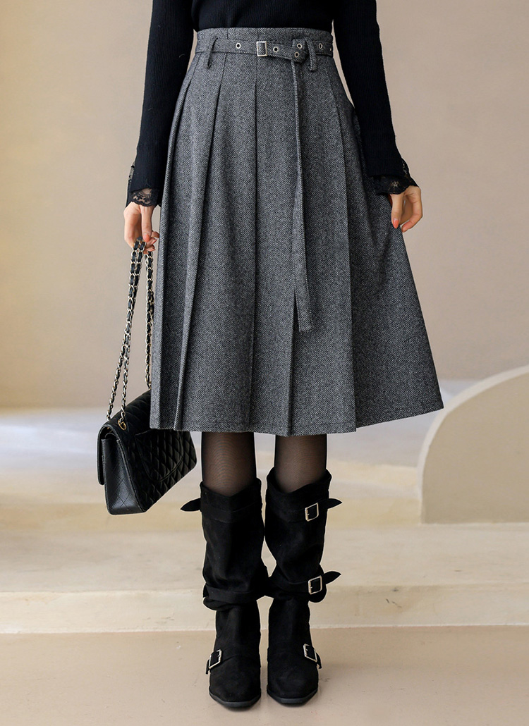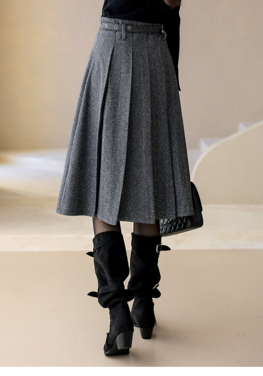ベルト付きヘリンボーン柄プリーツスカート sk43632