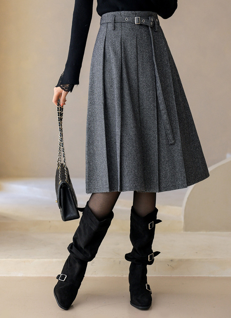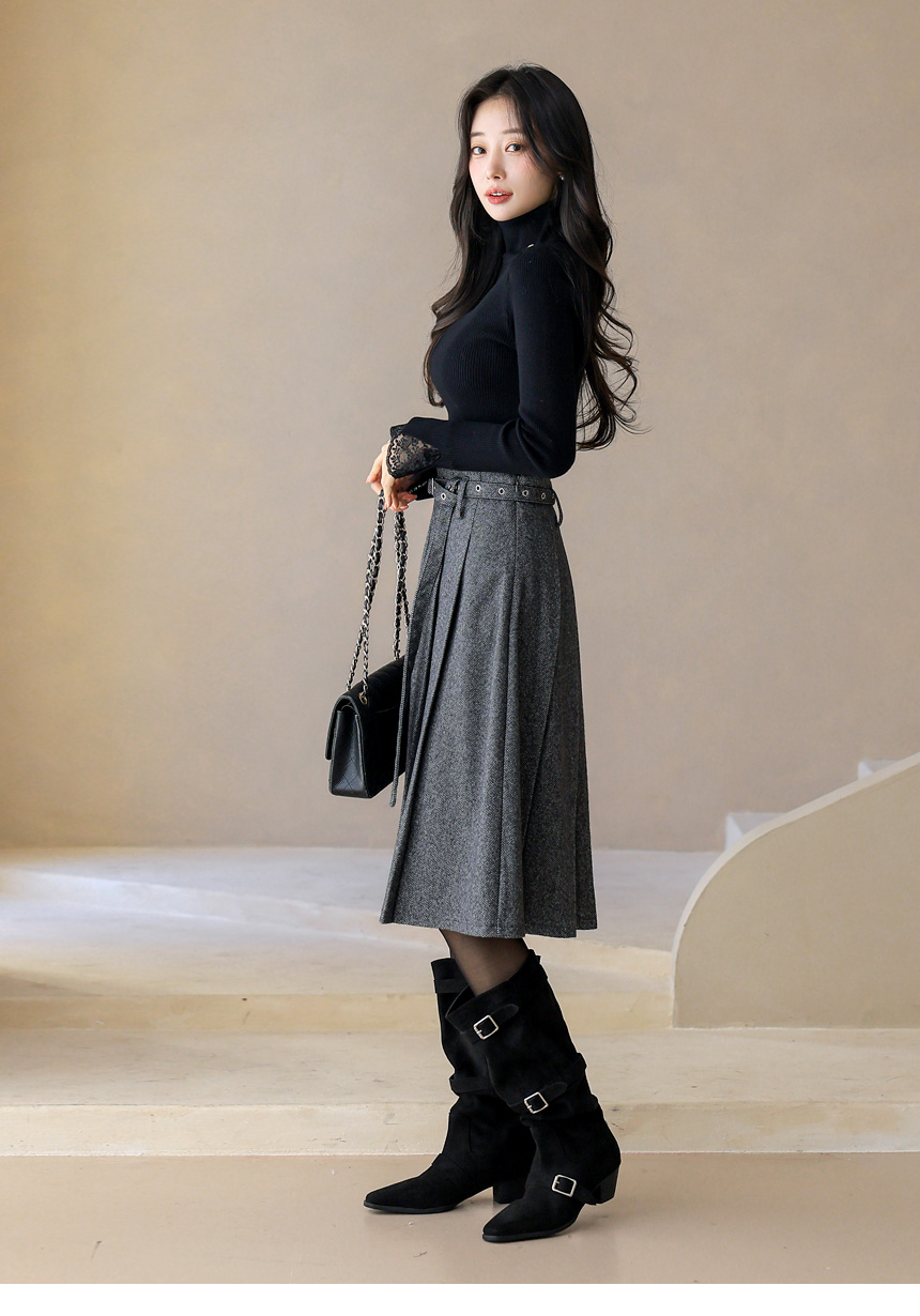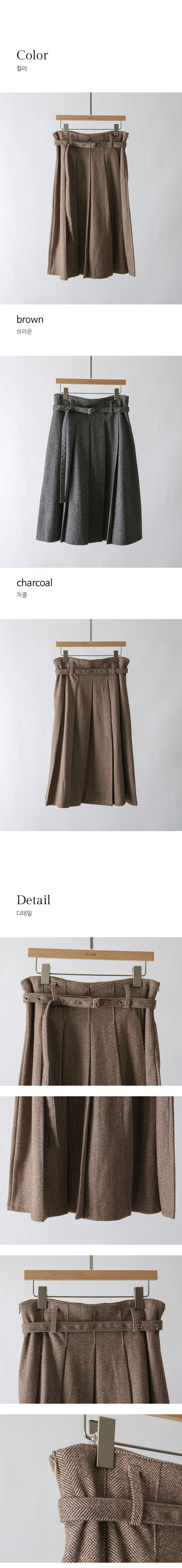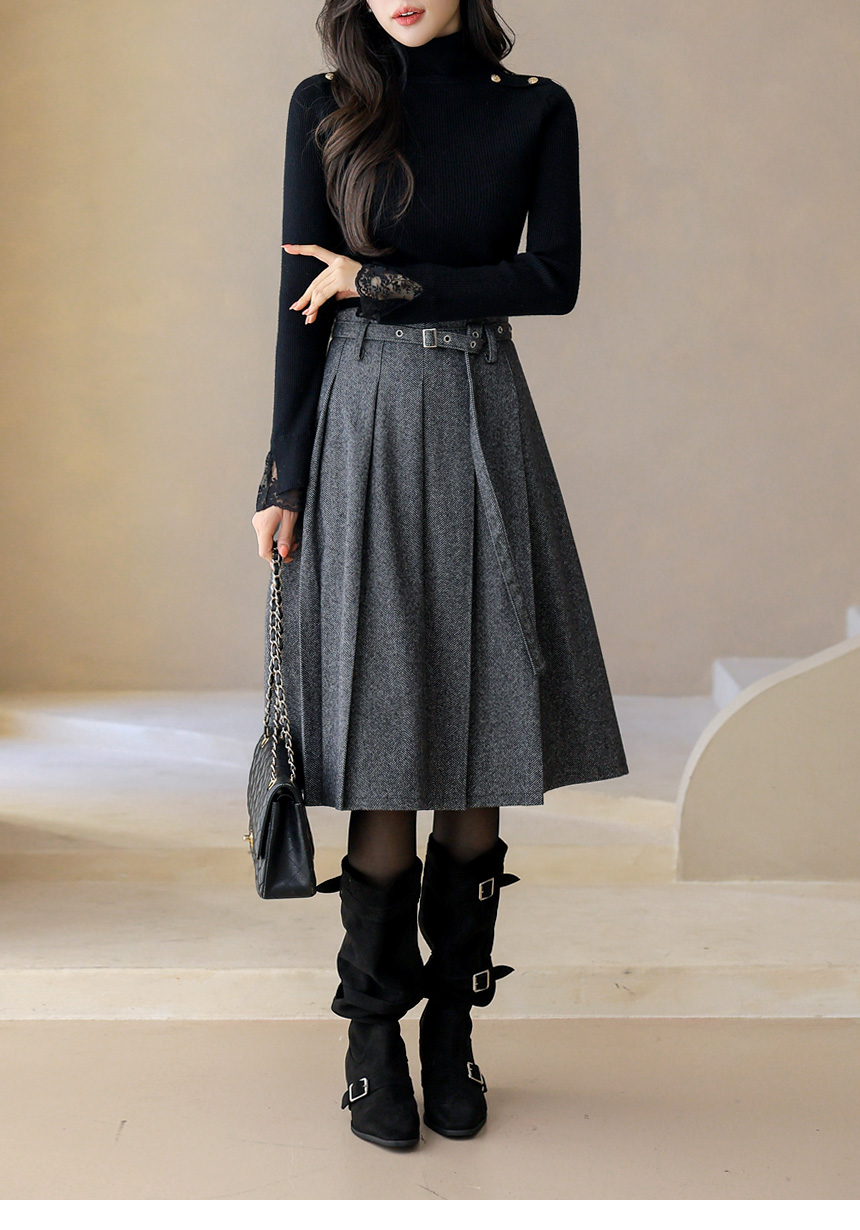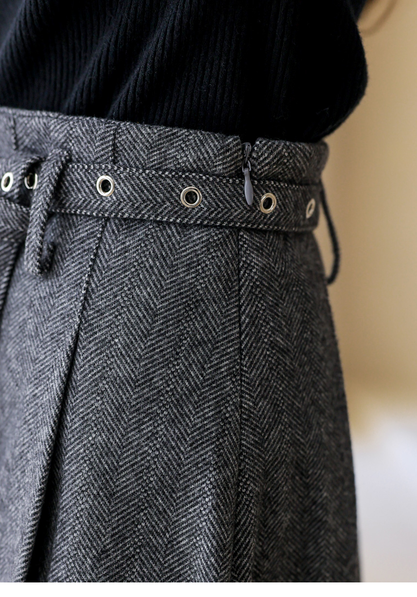 ベルト付きヘリンボーン柄プリーツスカート sk43632