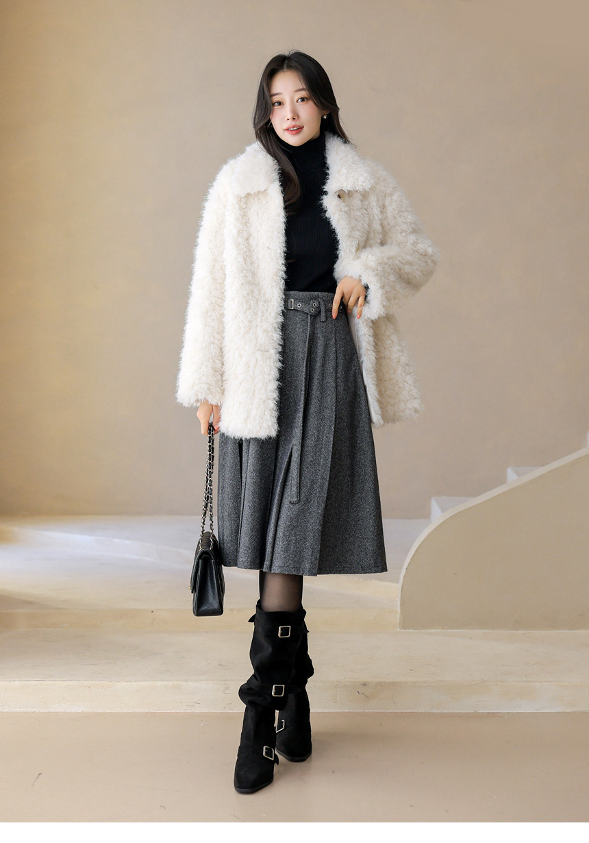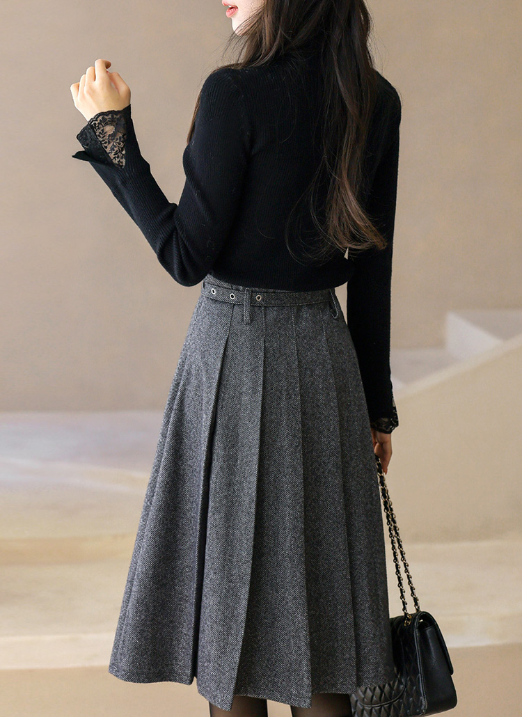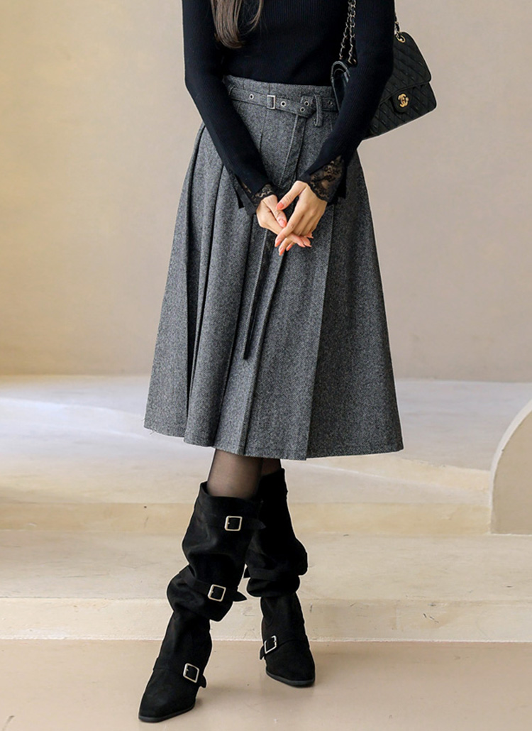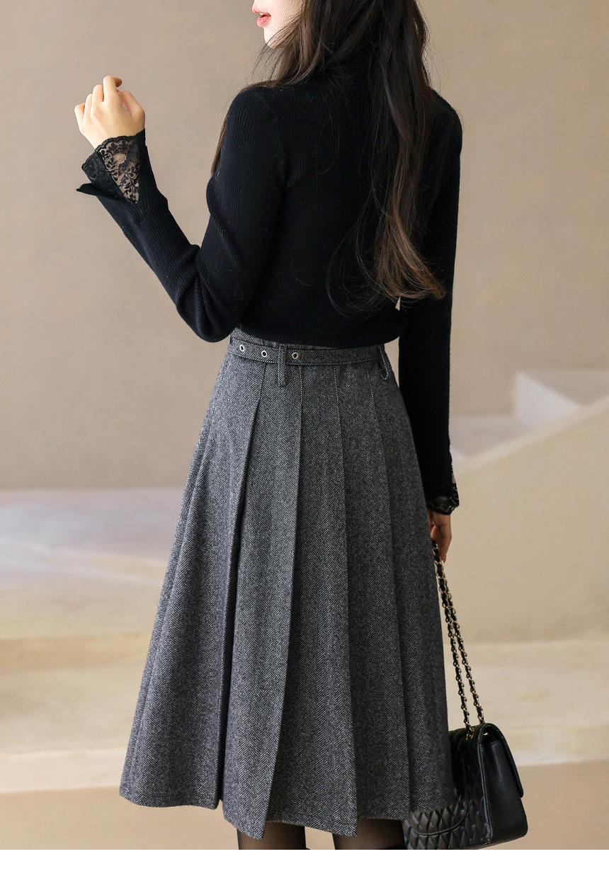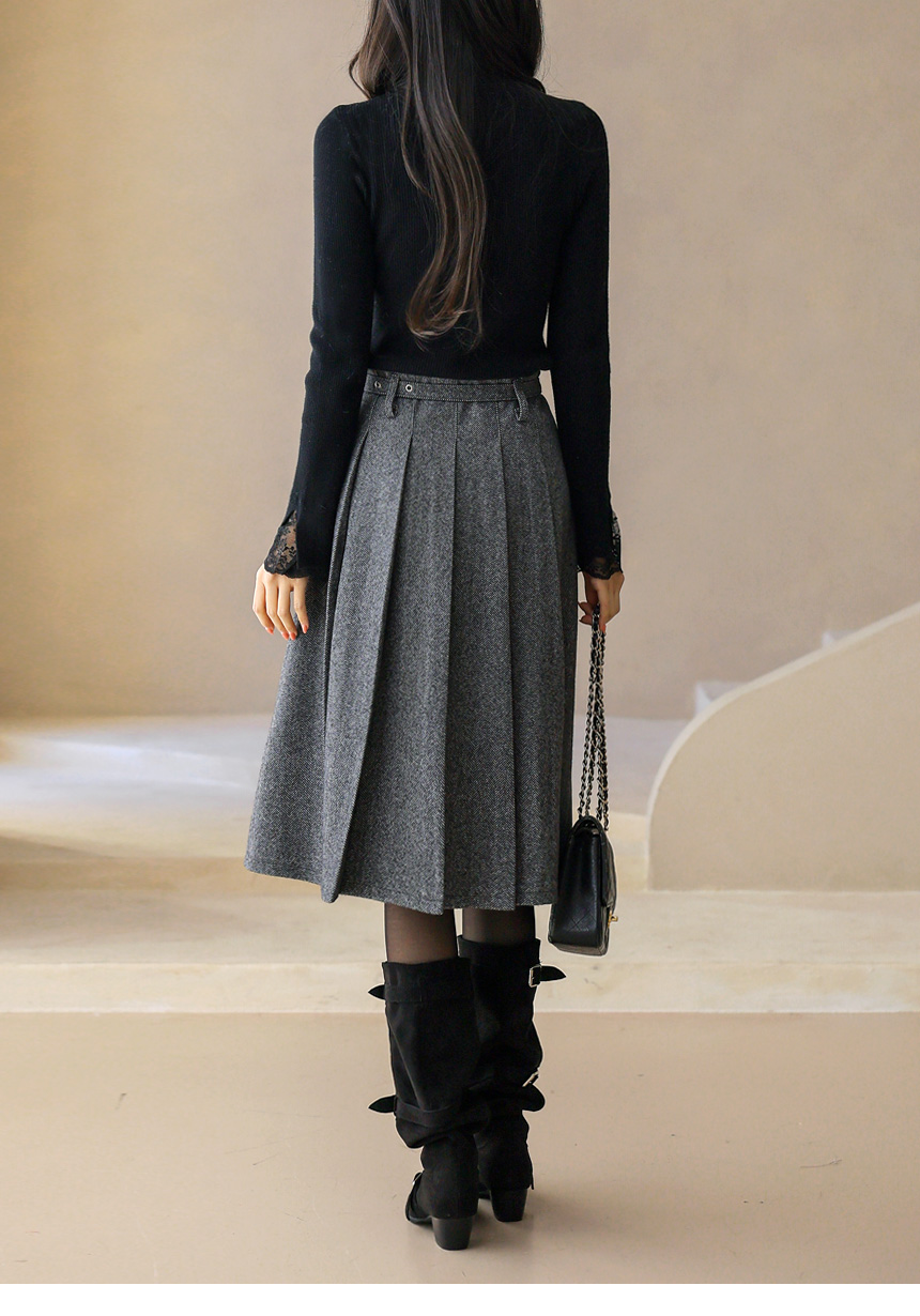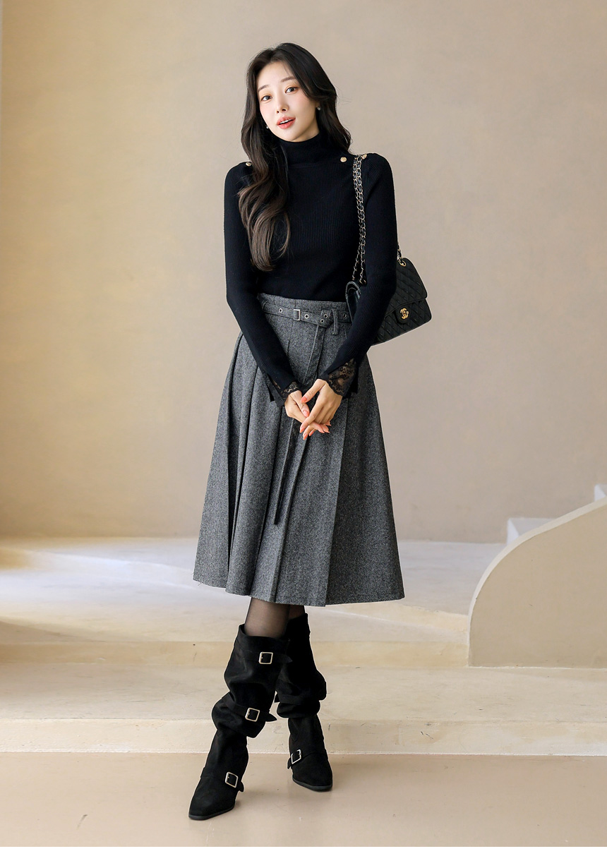 ベルト付きヘリンボーン柄プリーツスカート sk43632
