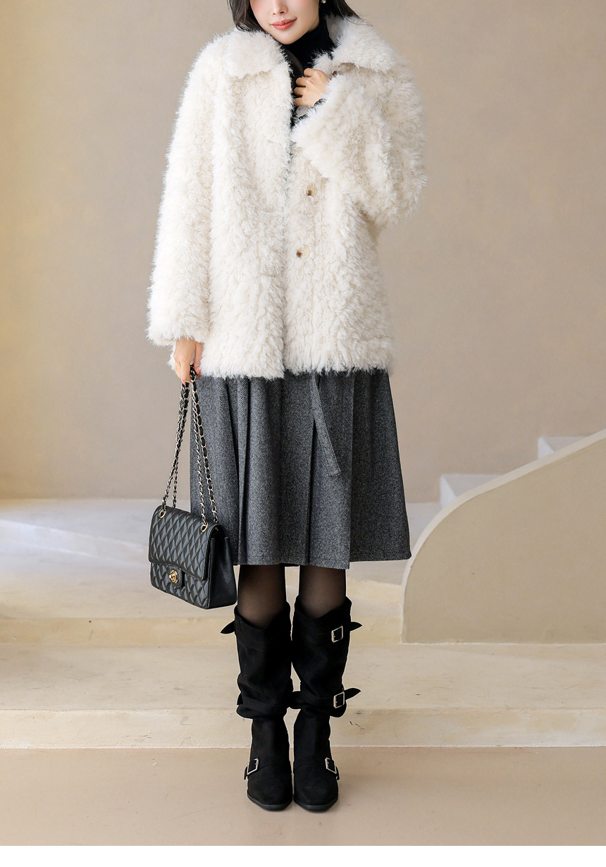 클래식한 우아함이 돋보이는 A라인 미디 플리츠 스커트에요