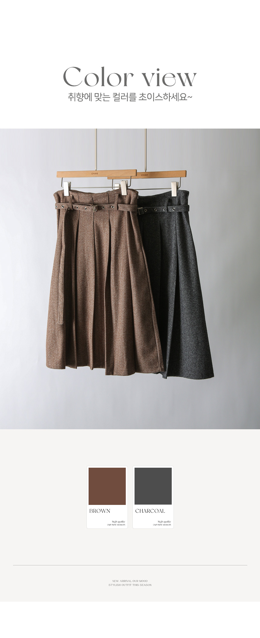 제원단의 벨트가 SET로 구성되어 스타일의 완성도를 한층 높여주고