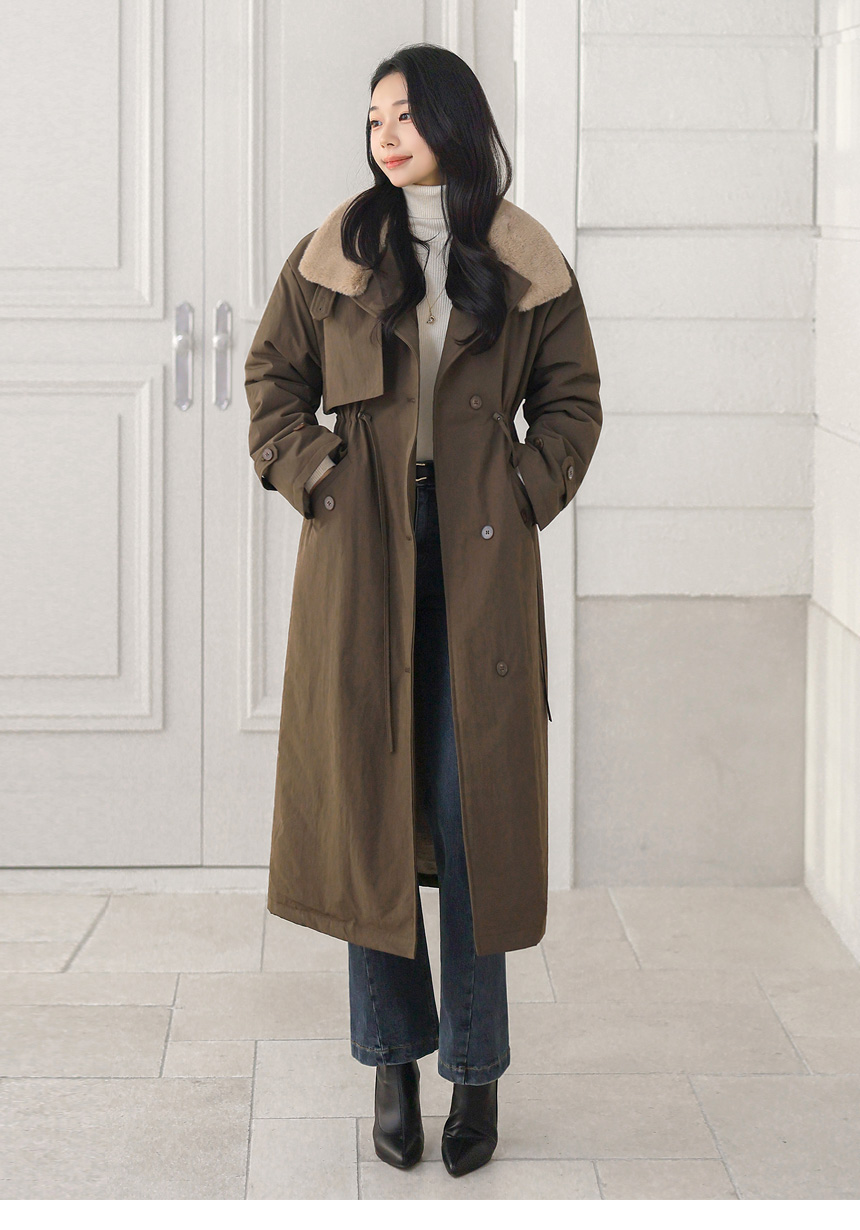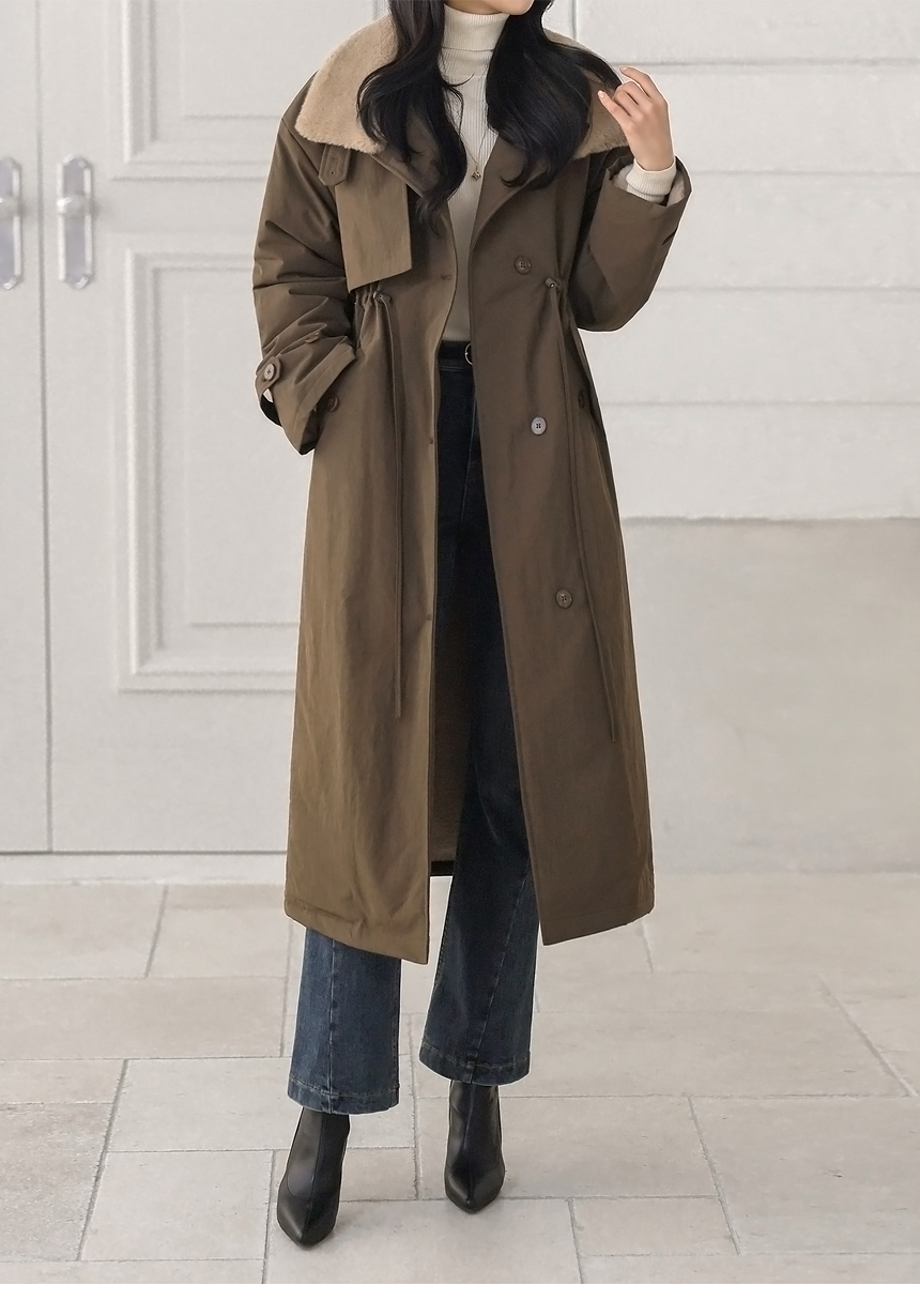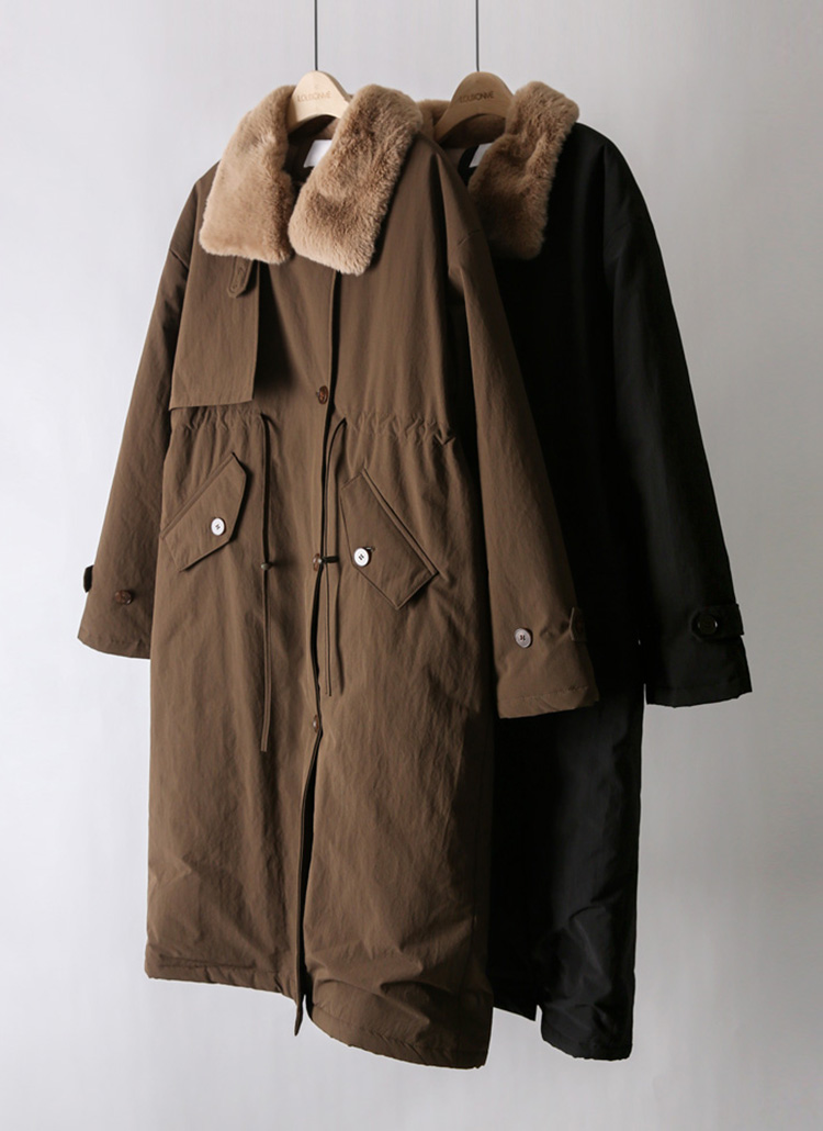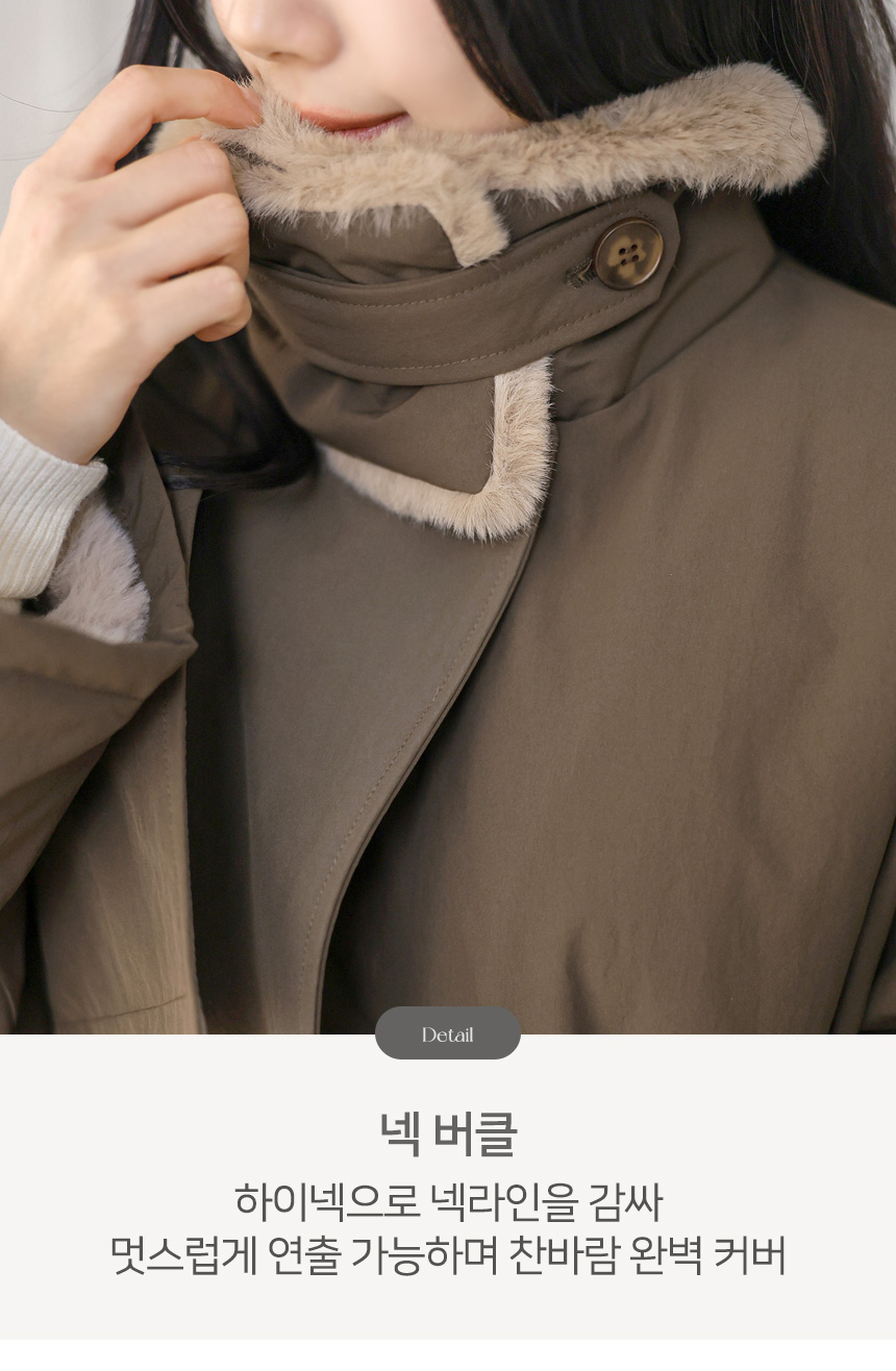 퍼 카라 디테일이 더해져 더욱 포근하고 여성스러운 무드를 연출해줍니다~