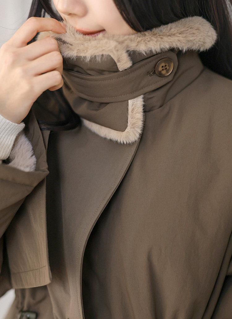 바디부터 소매까지 전체적으로 토끼털 퍼 안감이 더해져 뛰어난 보온성을 선사해줍니다
