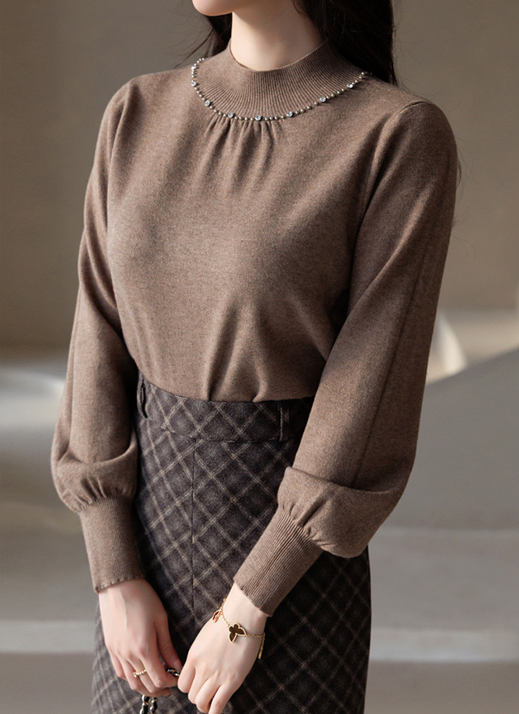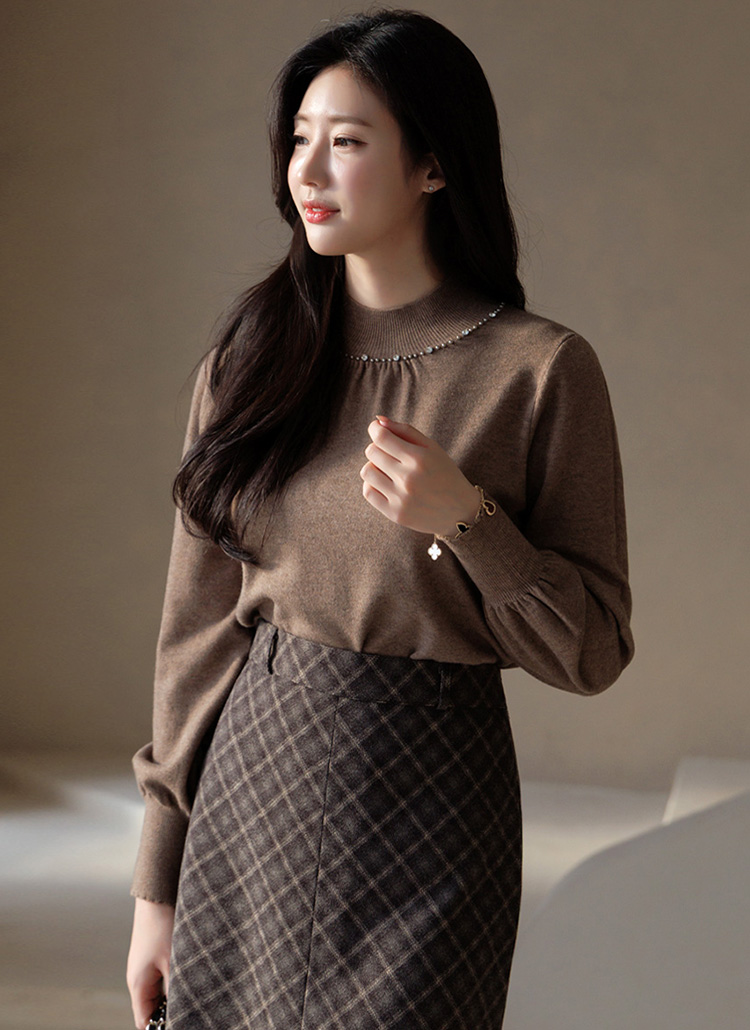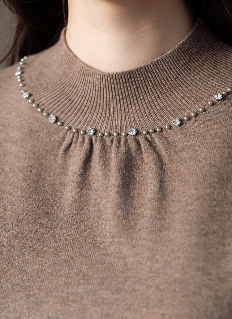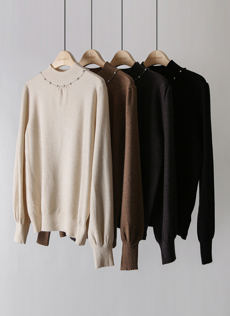 パールビジュー付きハイネックパフスリーブニット nt43668