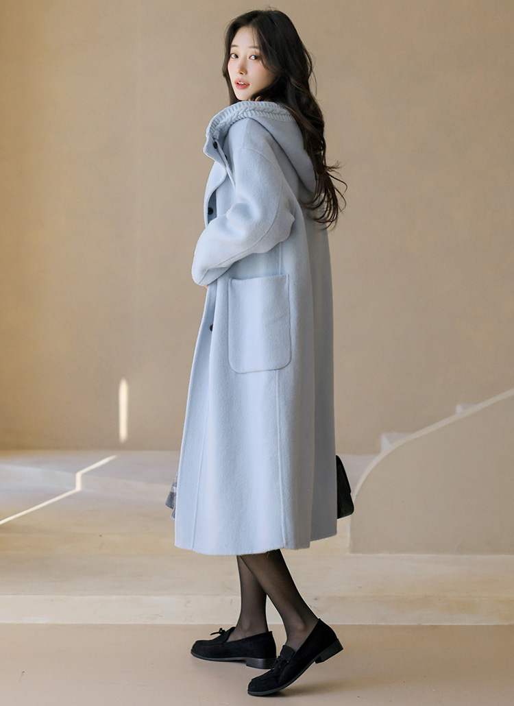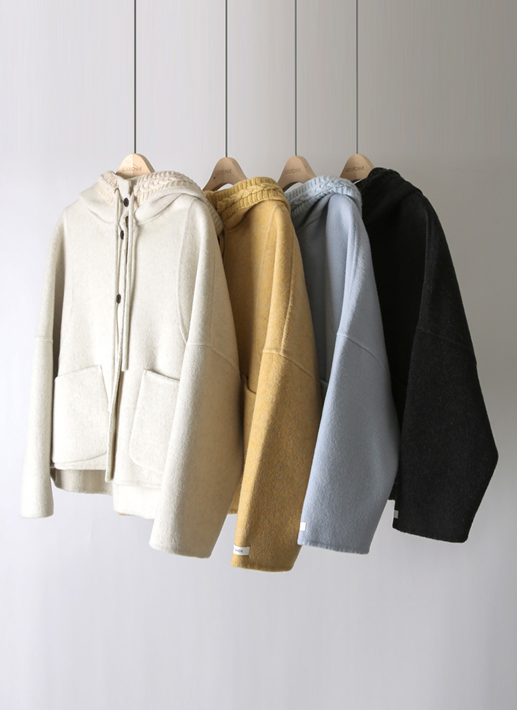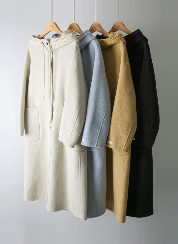 ケーブルニットドッキングフード付きウールハンドメイドコート ct43686