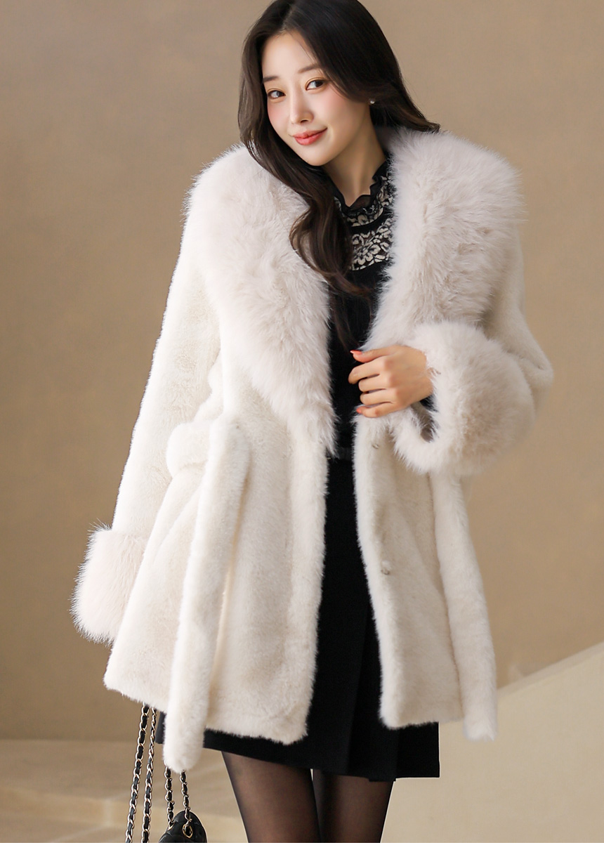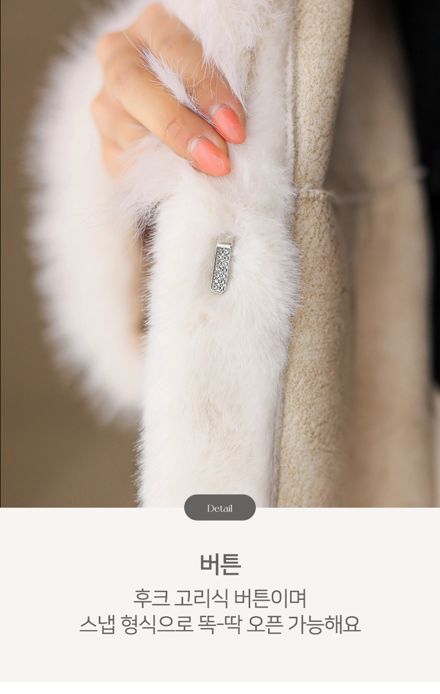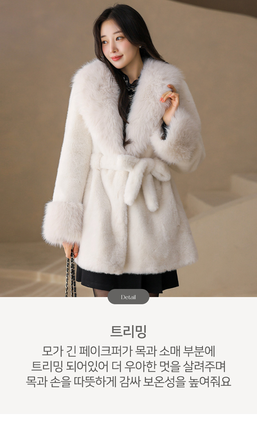 카라와 소매 부분에는 모가 길고 풍성한 퍼를 트리밍해