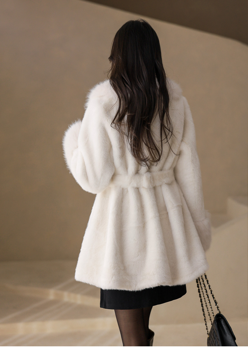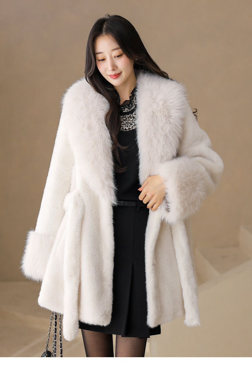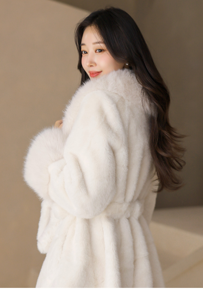 카라와 소매 부분에는 모가 길고 풍성한 퍼를 트리밍해