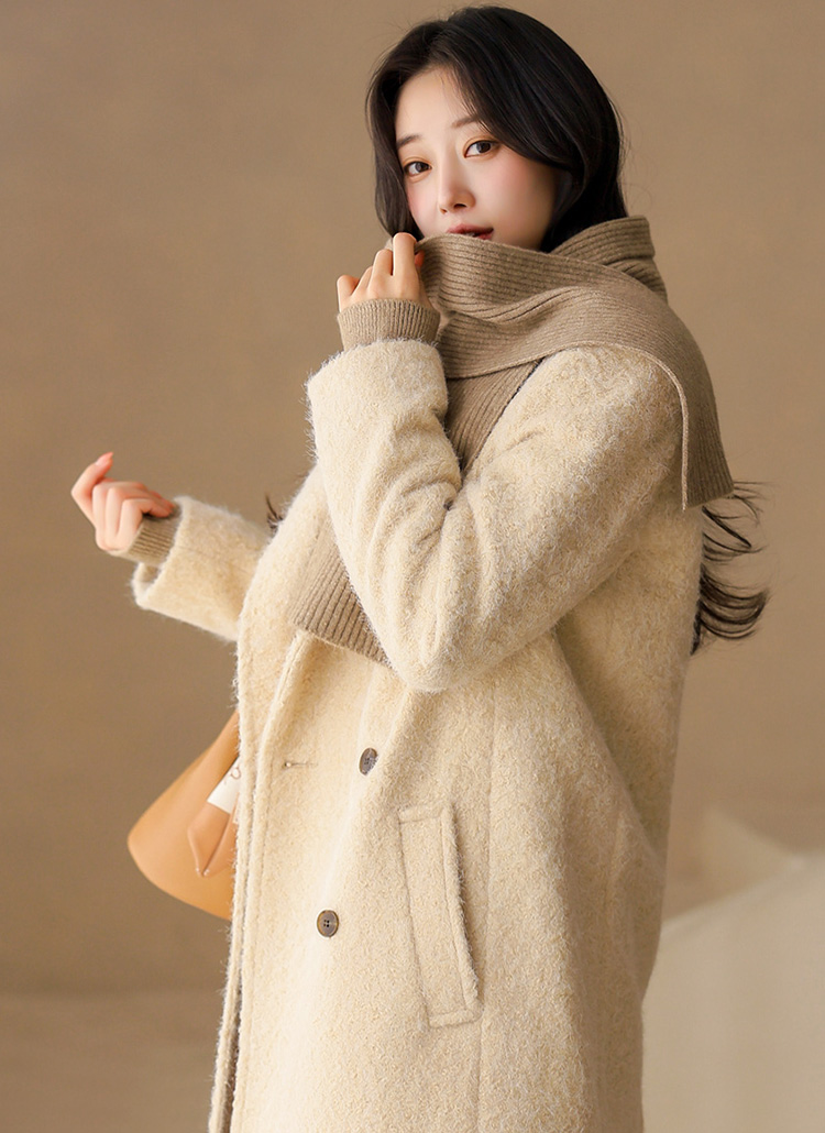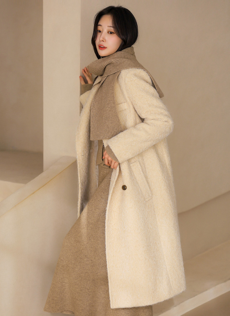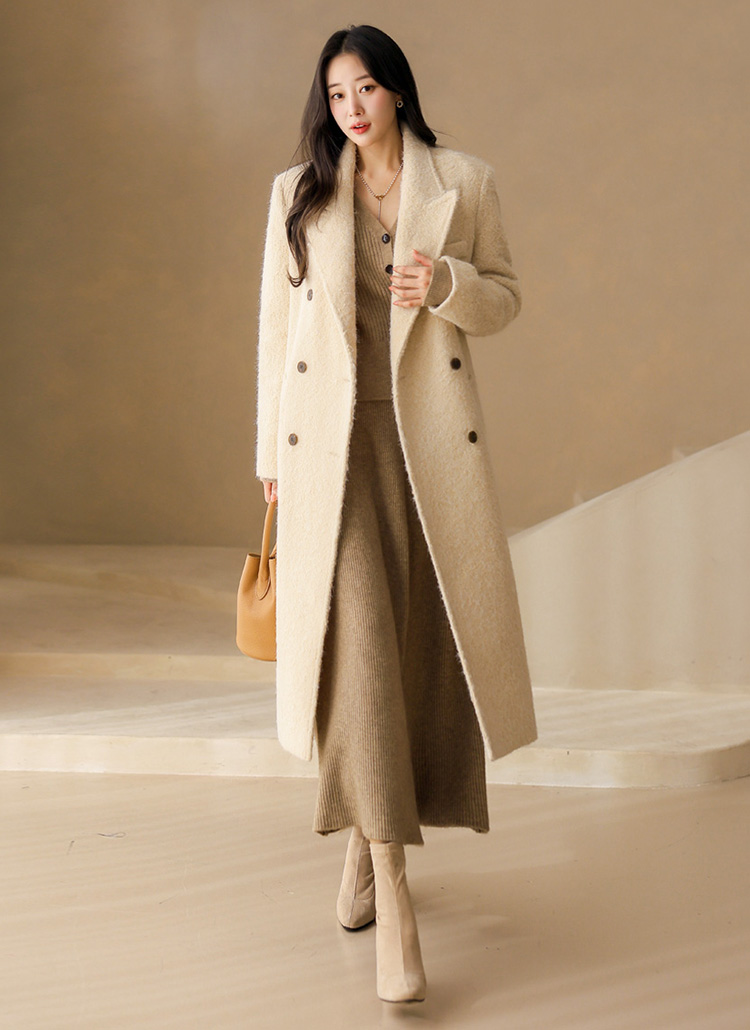 따뜻함과 고급스러움을 모두 갖춘 부클 롱코트로