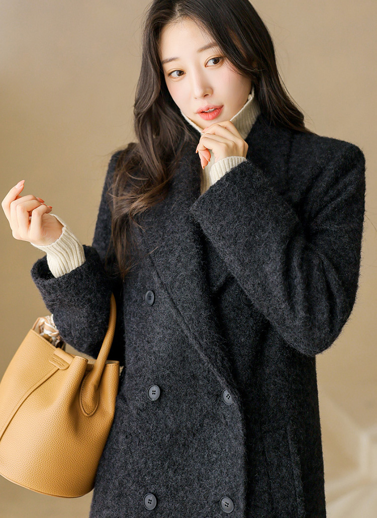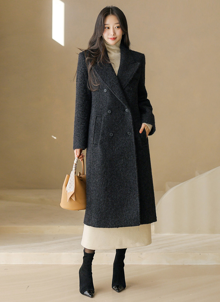 따뜻함과 고급스러움을 모두 갖춘 부클 롱코트로