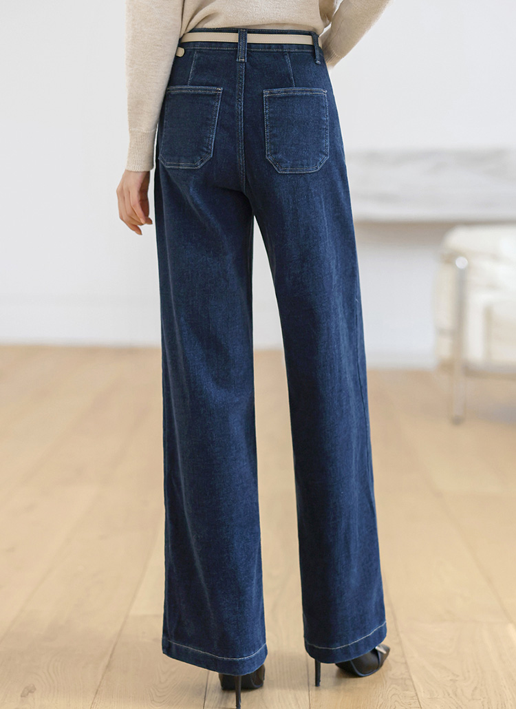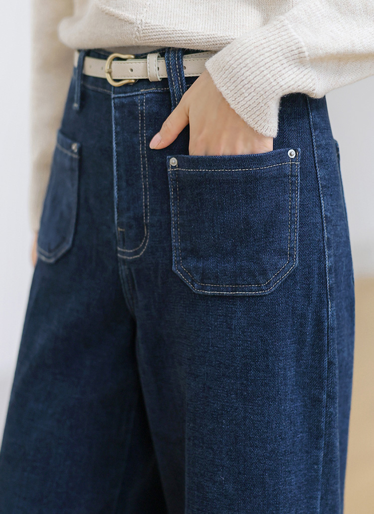 裏起毛フロントポケットワイドデニムパンツ pt43729