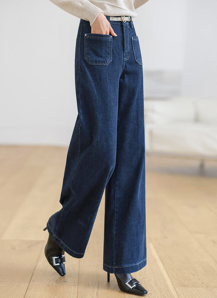裏起毛フロントポケットワイドデニムパンツ pt43729