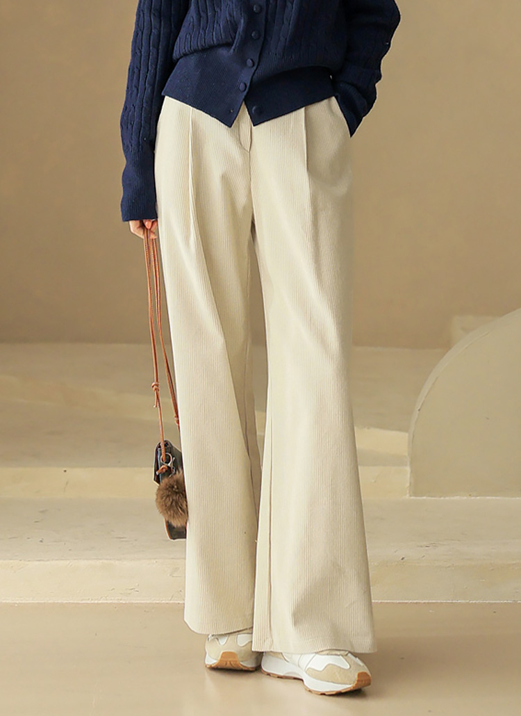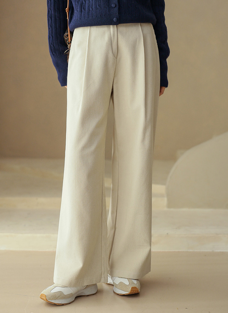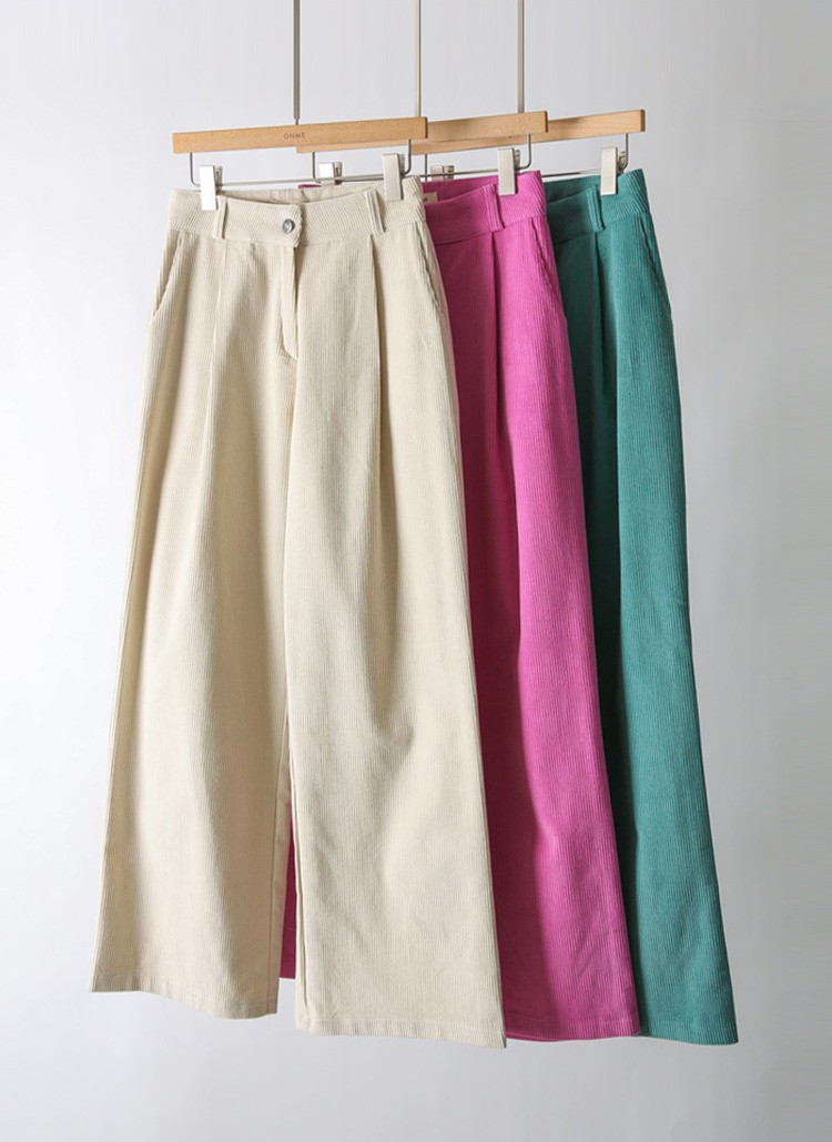 원턱 세미 와이드 코듀로이 슬랙스에요