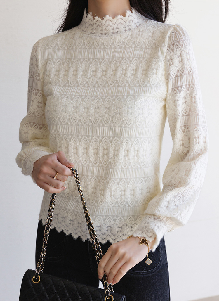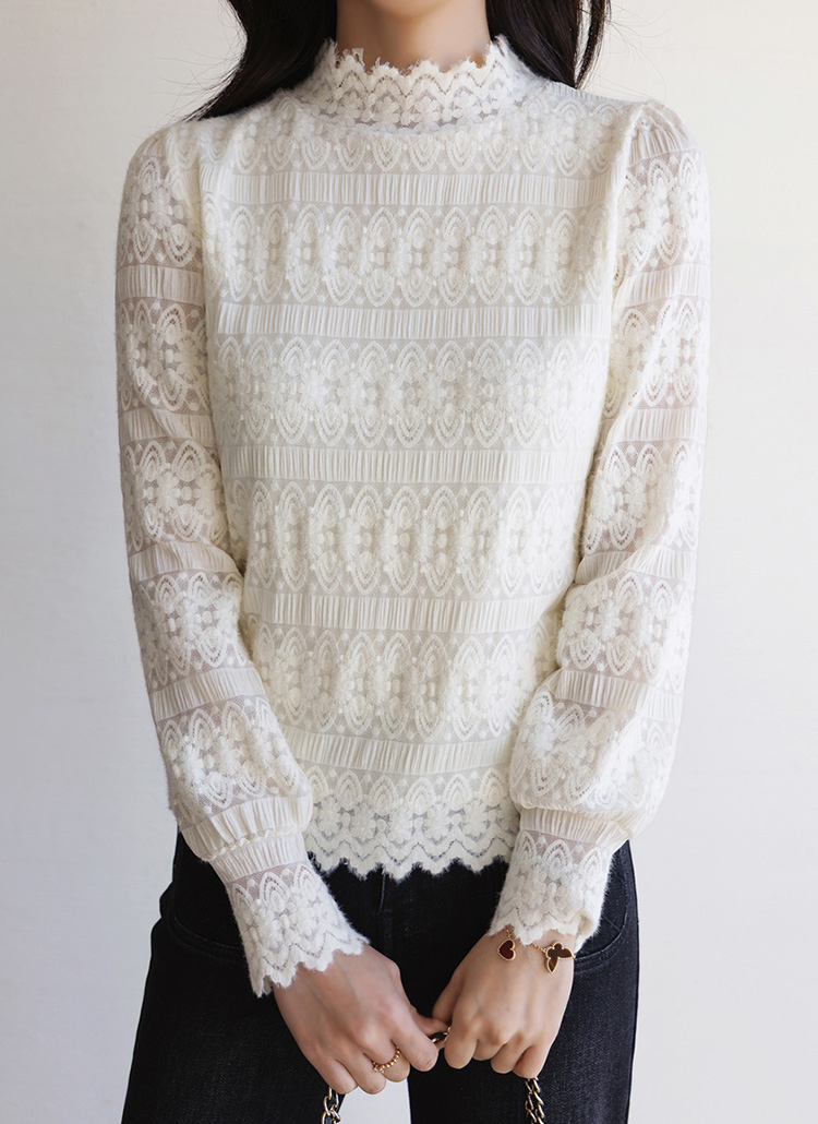 분들을 위한 속 기모 안감 레이스 블라우스에요