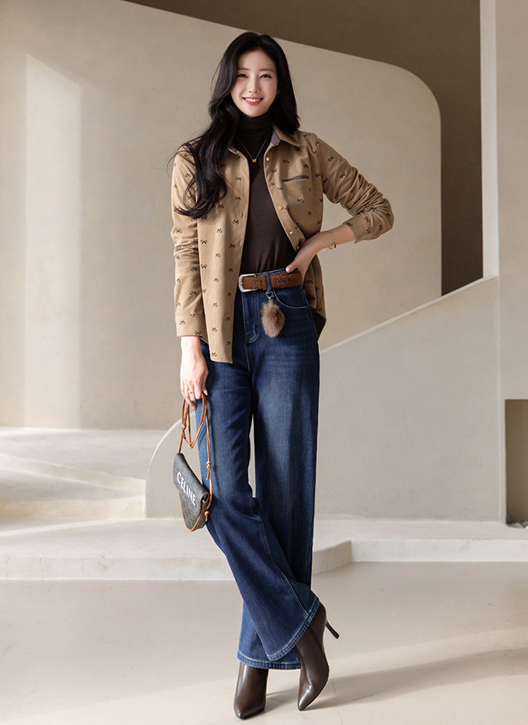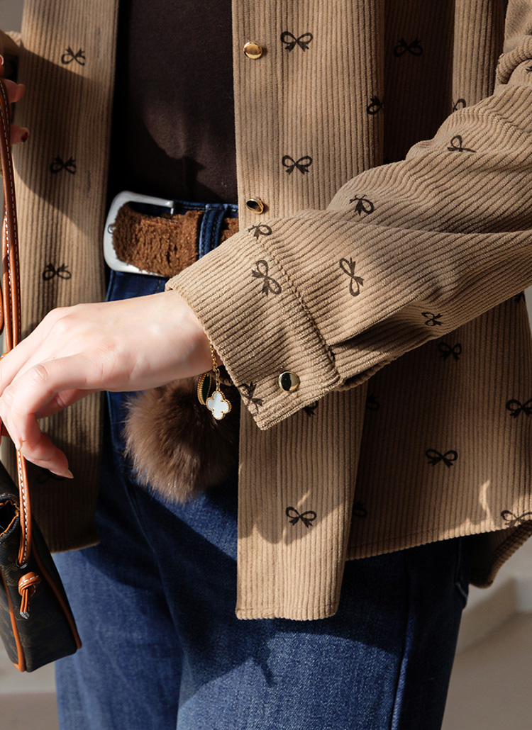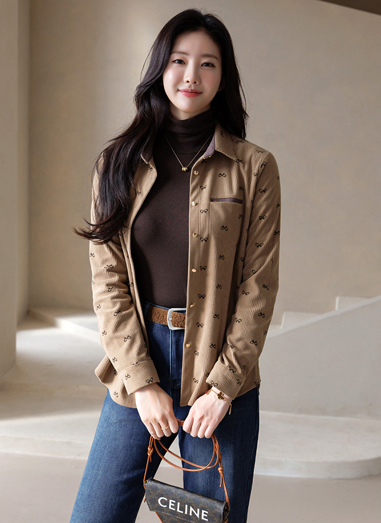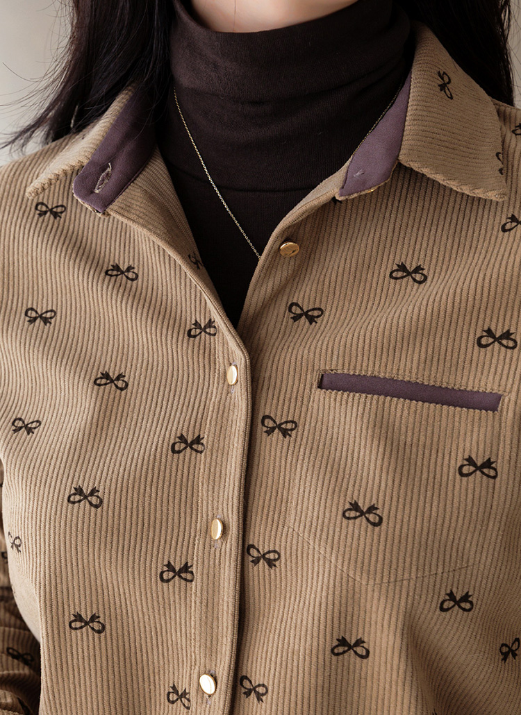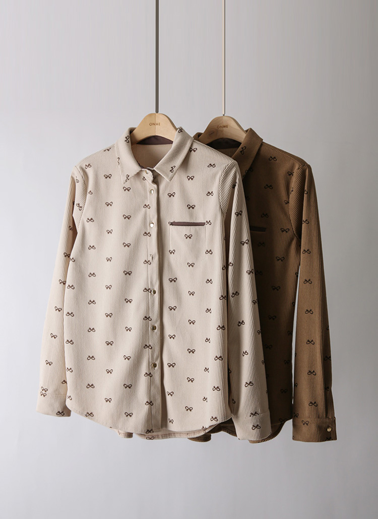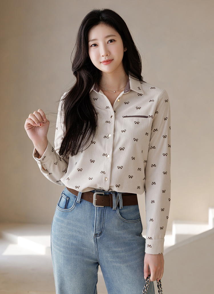 [LouisAngel] リボンプリント コーデュロイシャツブラウス bl43750
