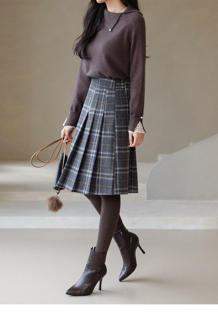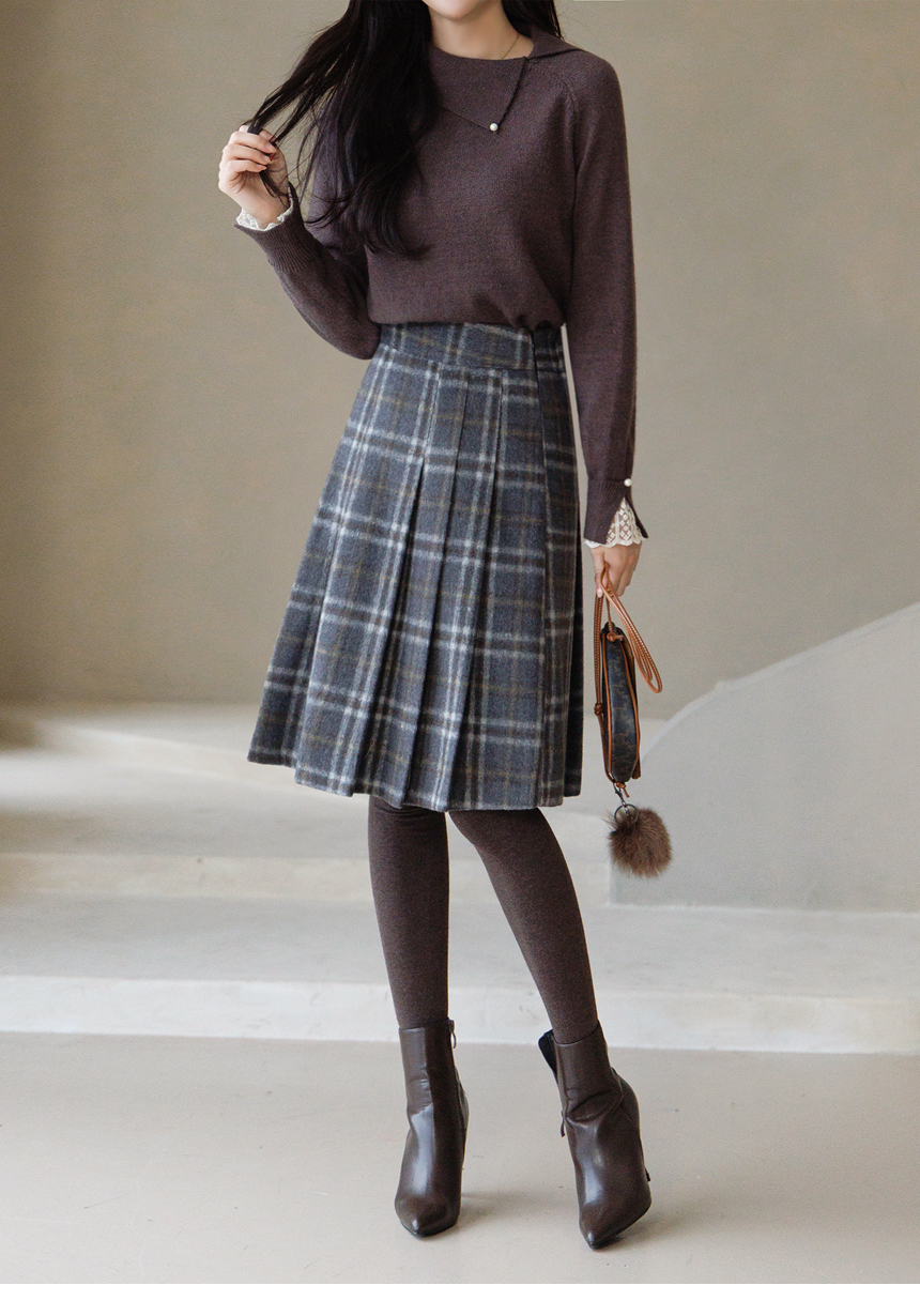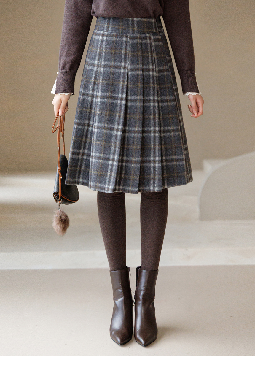 【無地&チェック】ソフトウォームプリーツミディスカート sk43774