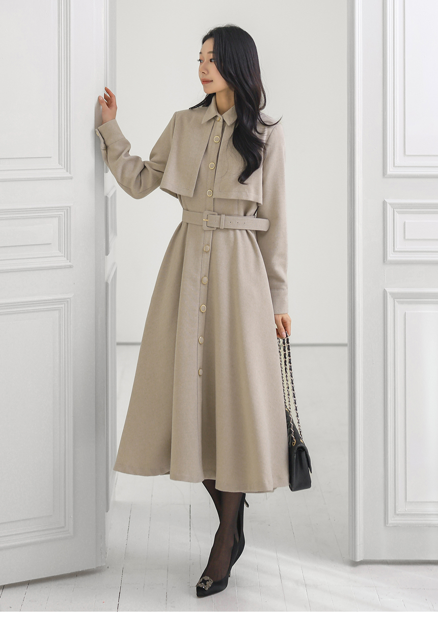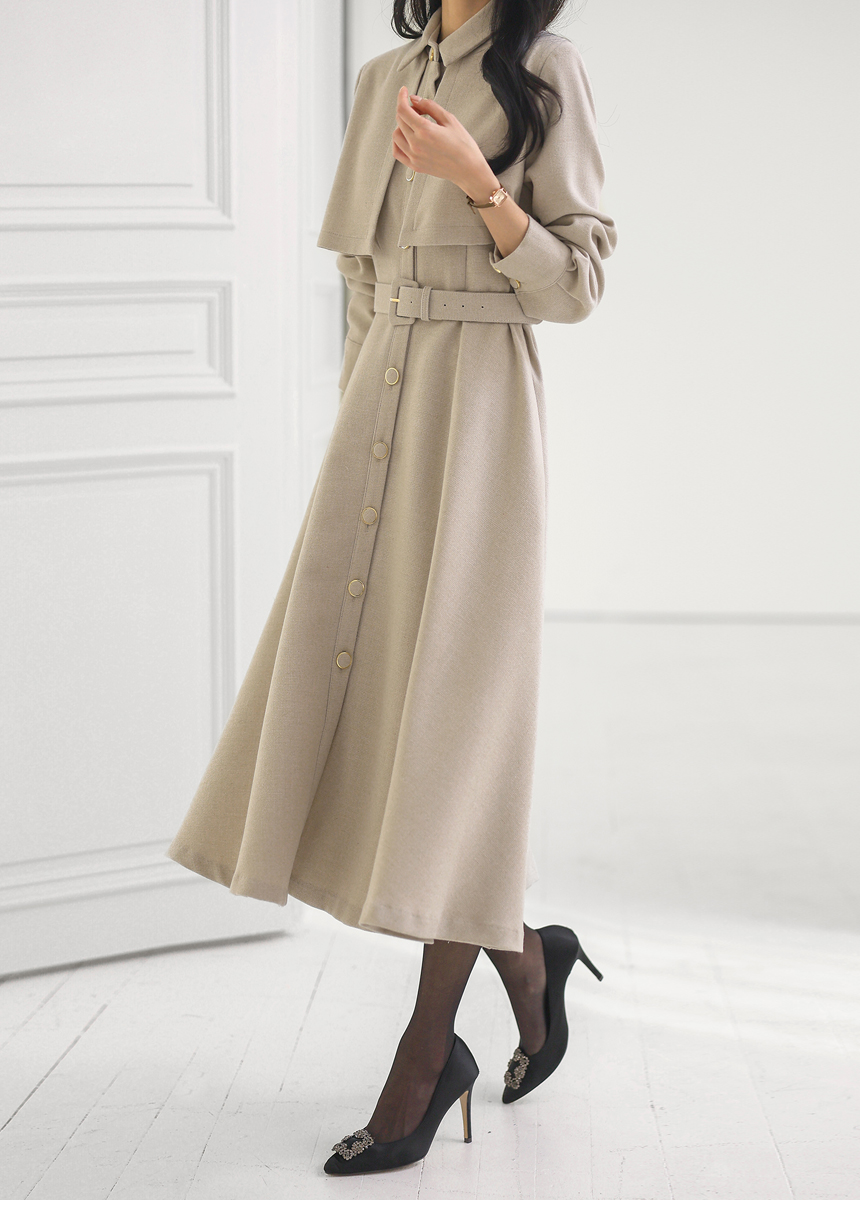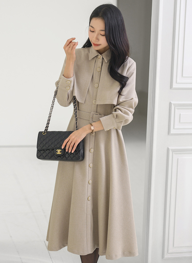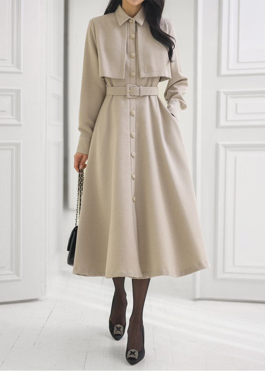 ベルト付きトレンチロングフレアワンピース op43777