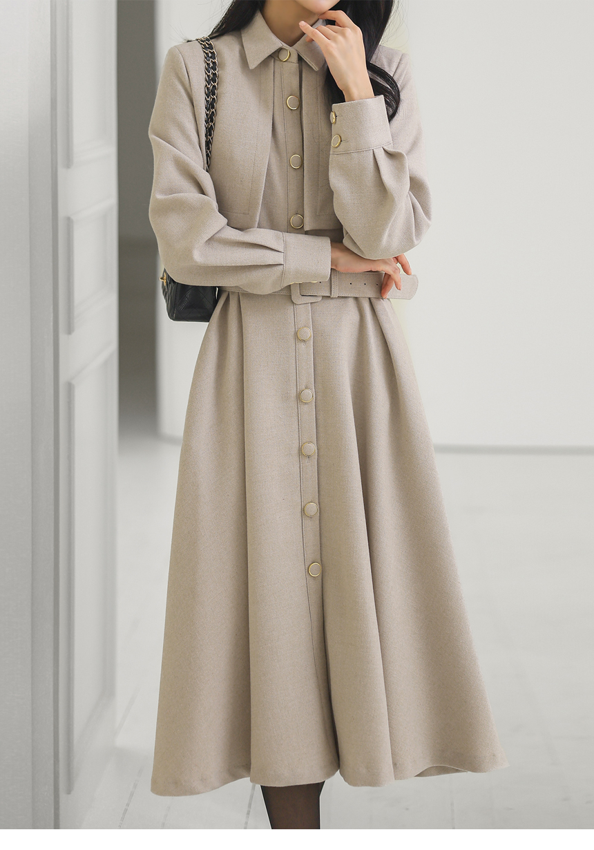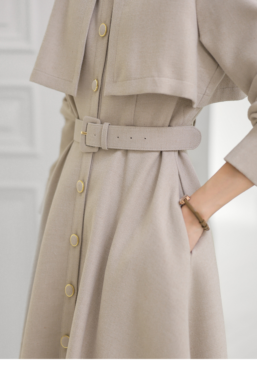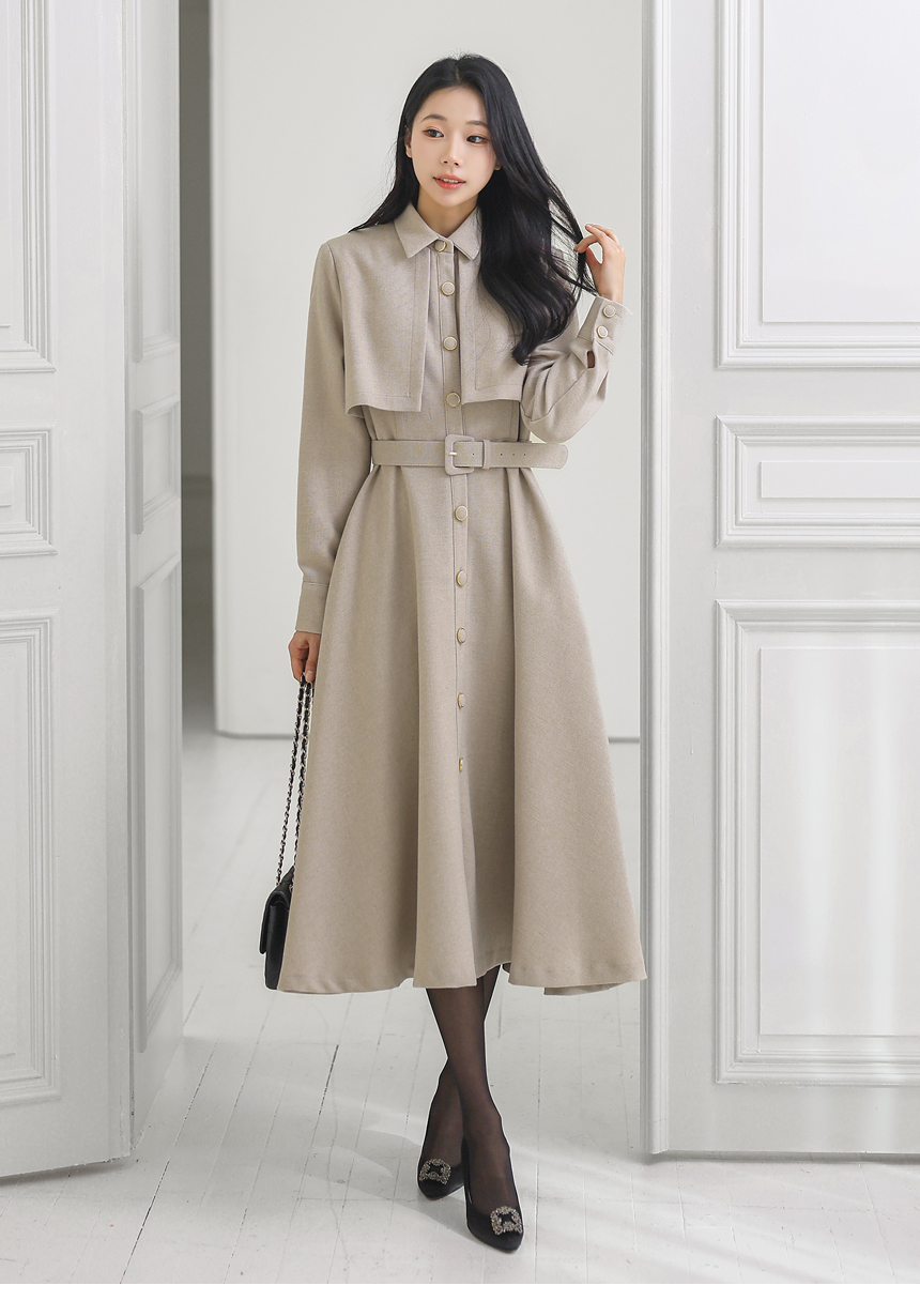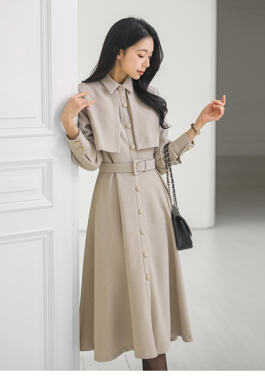 ベルト付きトレンチロングフレアワンピース op43777