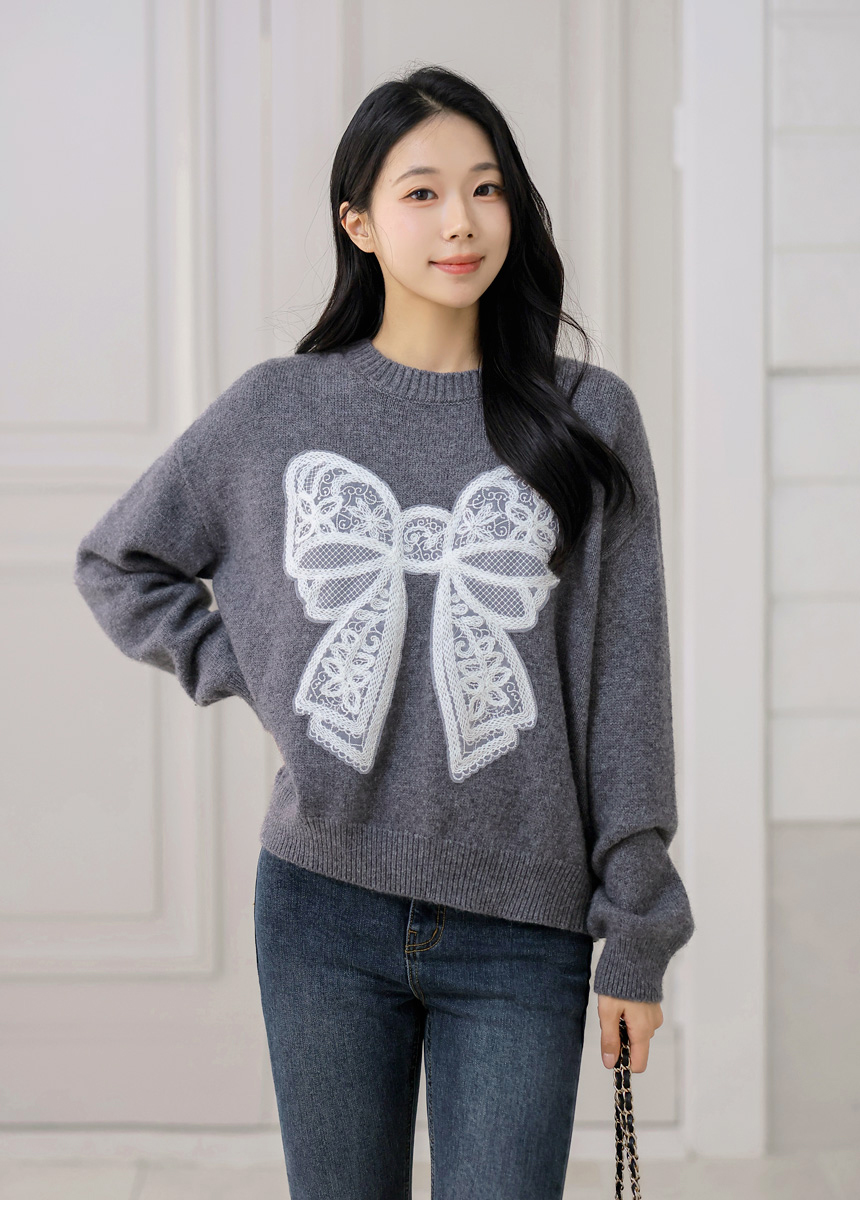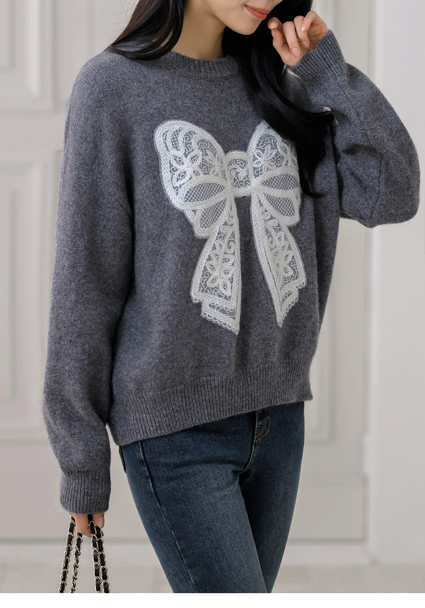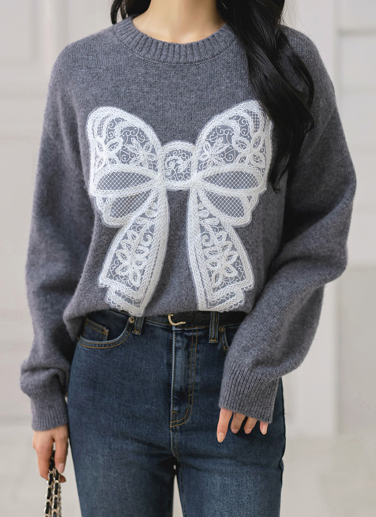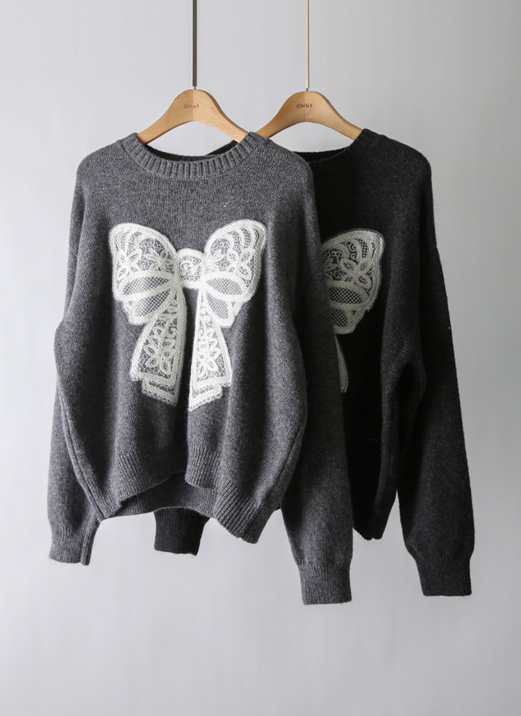 레이스 리본 포인트의 루즈핏 니트예요 :)