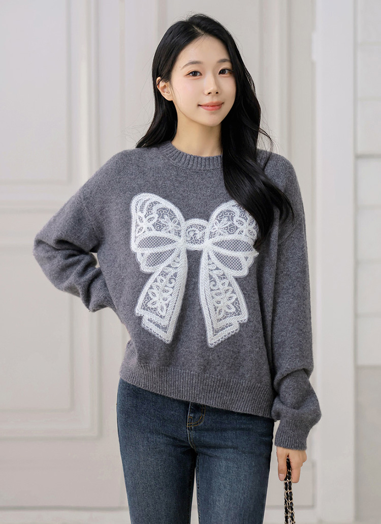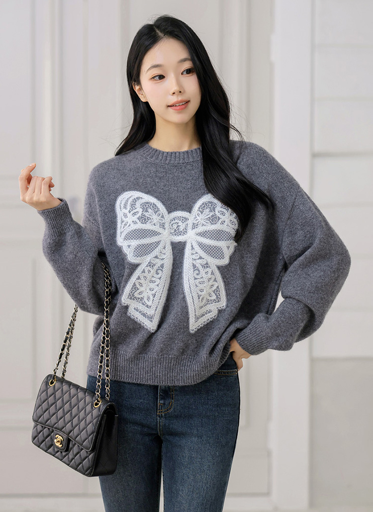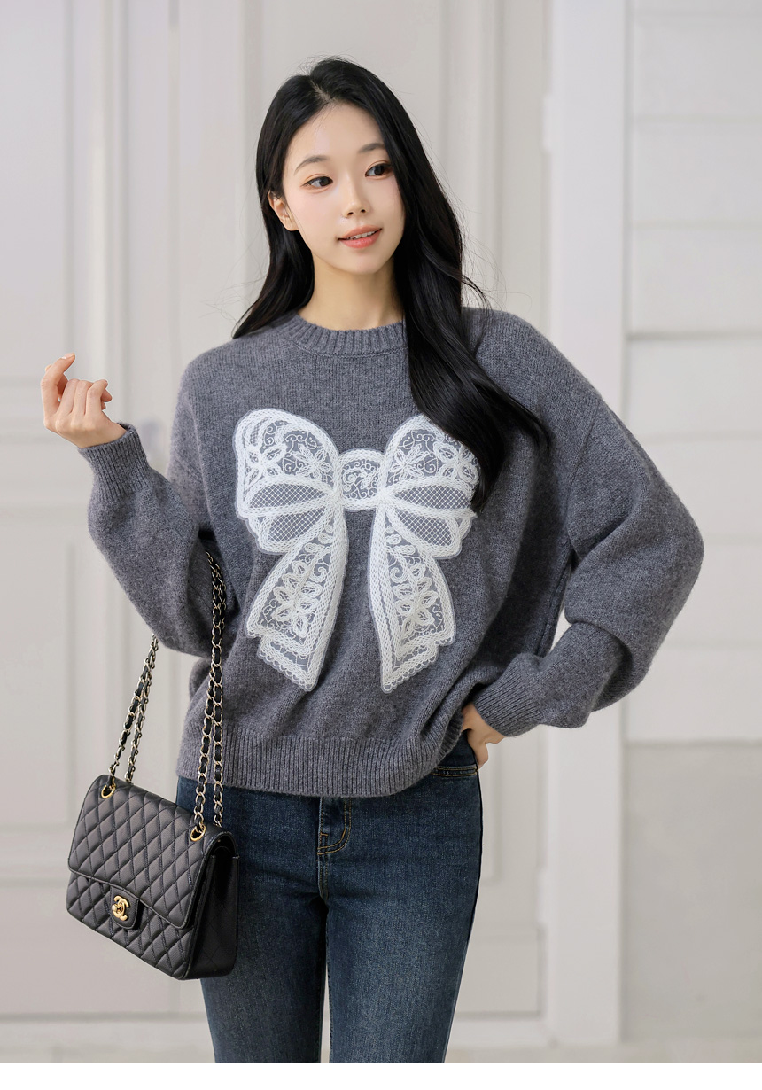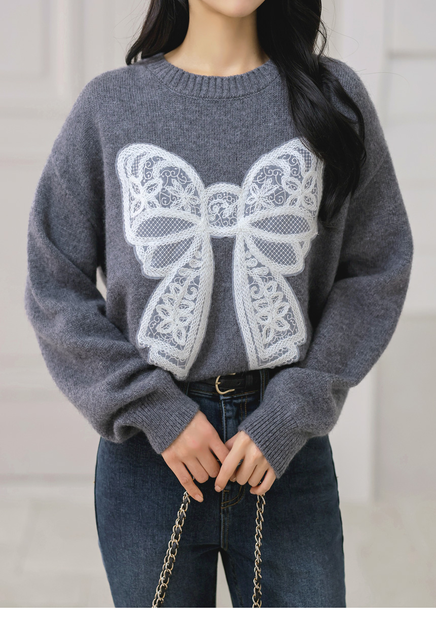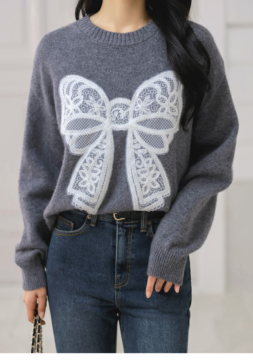 레이스 리본 포인트의 루즈핏 니트예요 :)