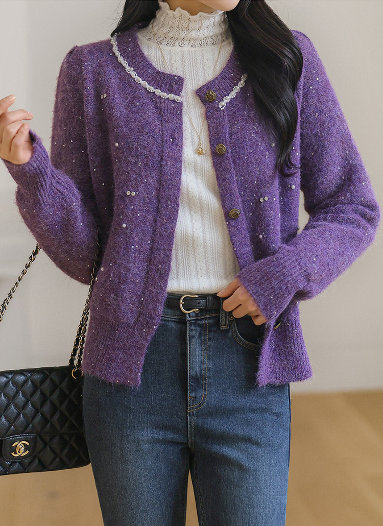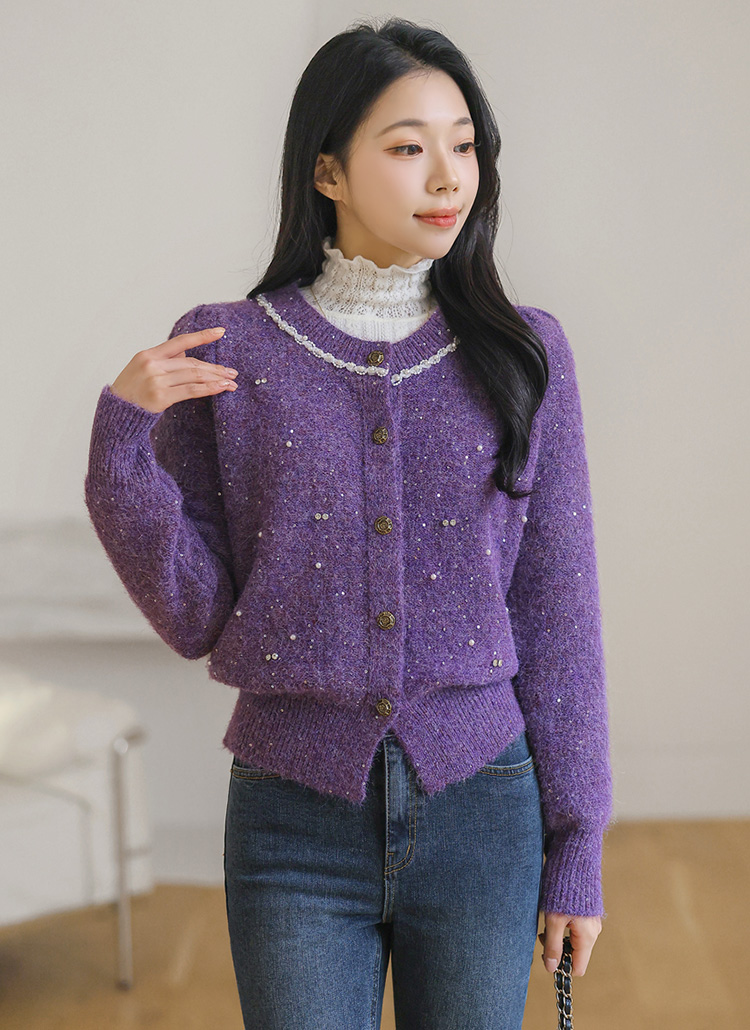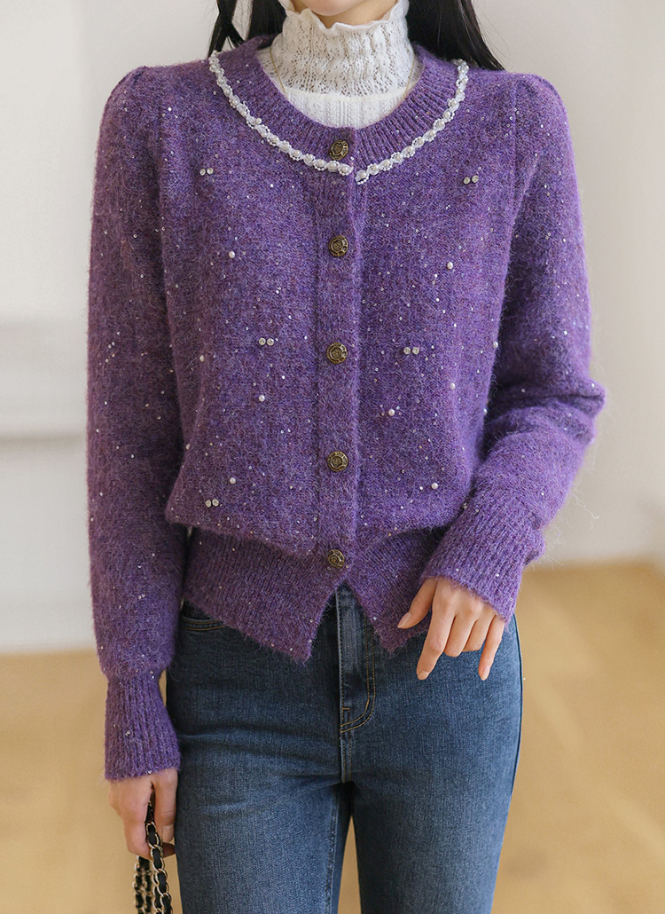 スパンコールビジュー付き ヘアリーニットカーディガン cd43807