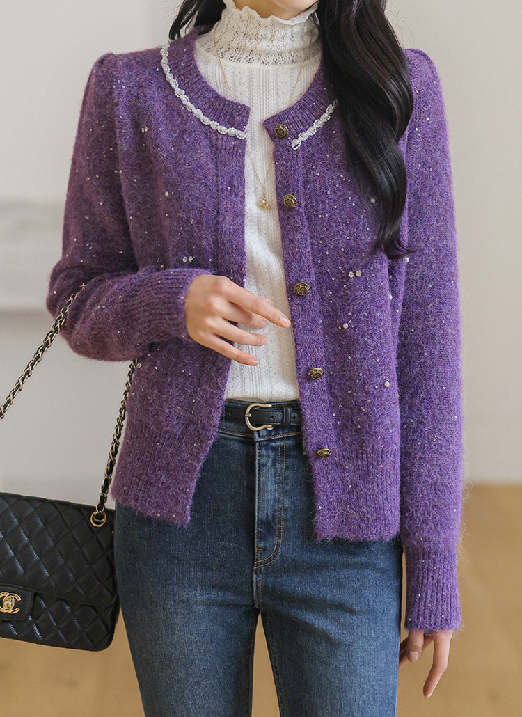 화사하면서도 고급스러운 무드를 연출해주는 니트 가디건이에요 :)
