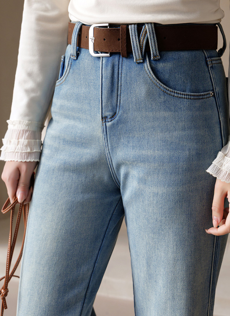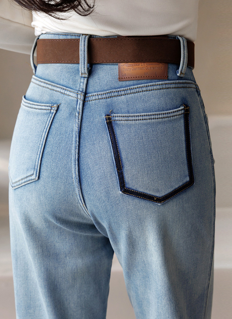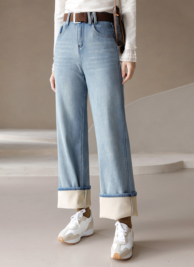 일자핏 세미 와이드 융 기모 데님 팬츠에요