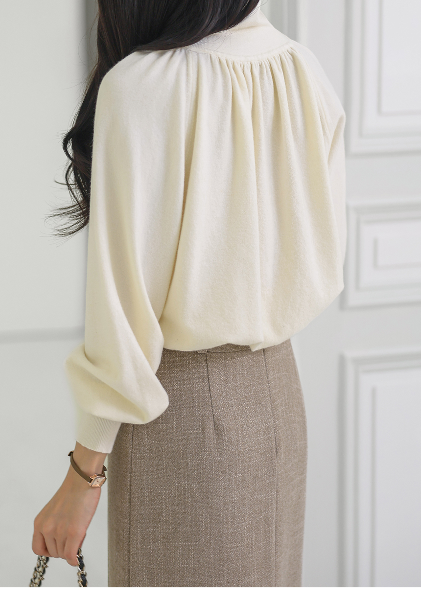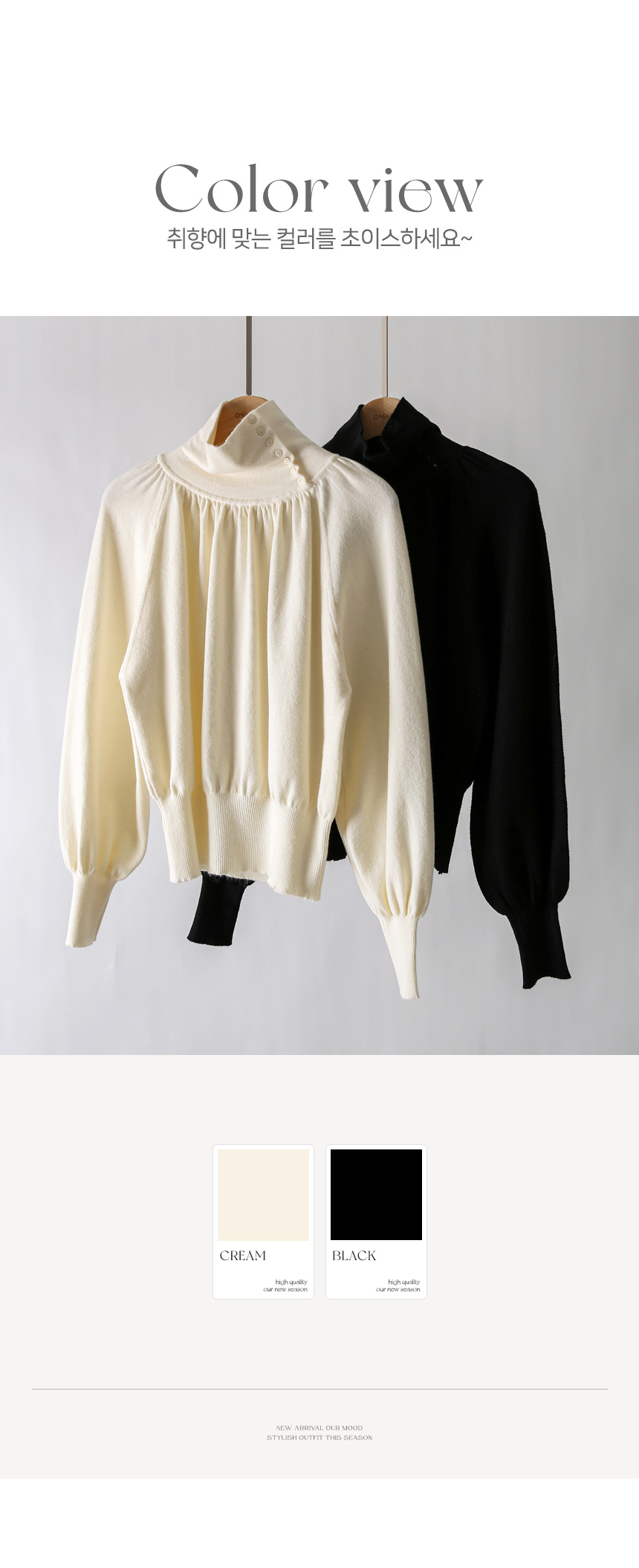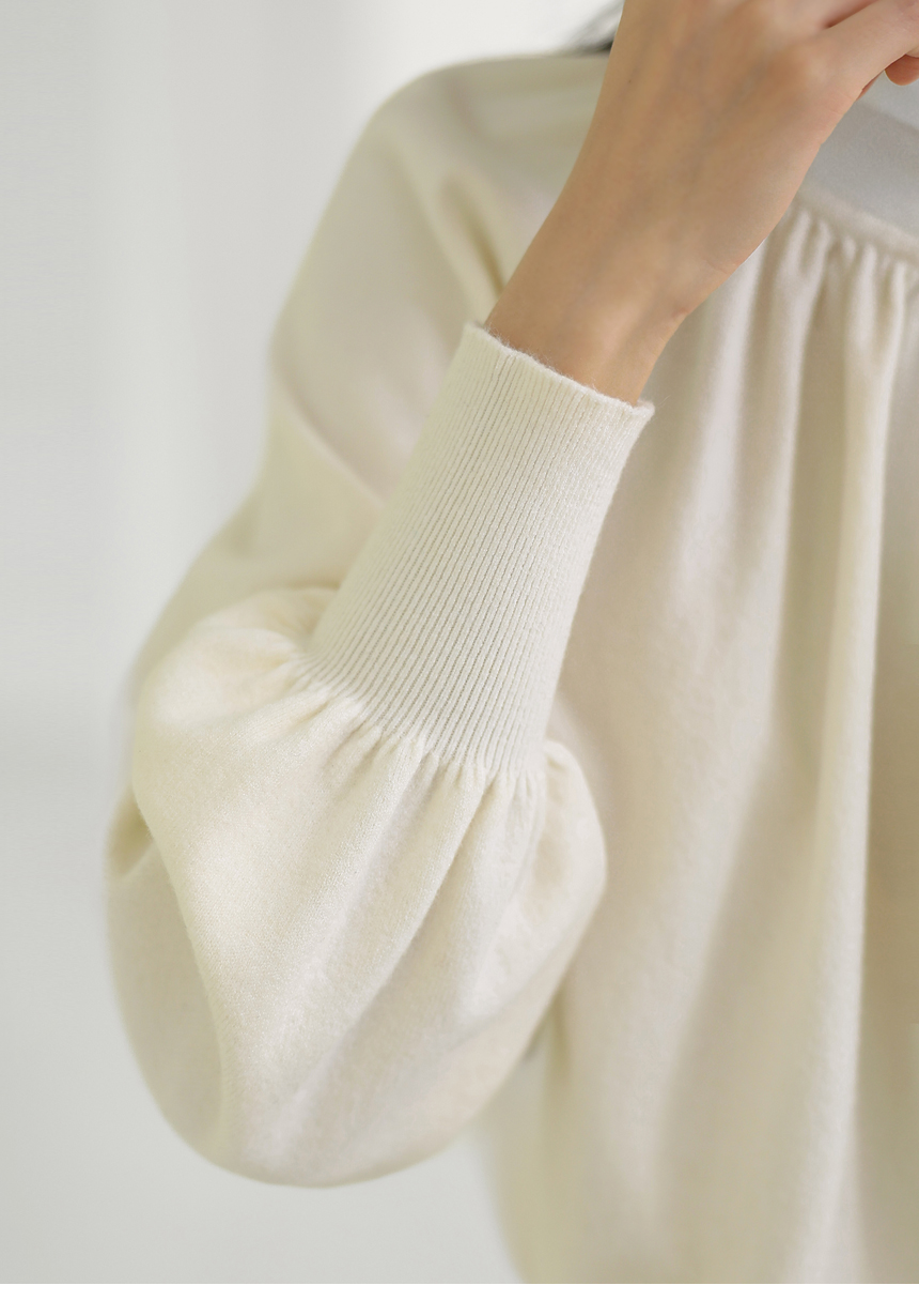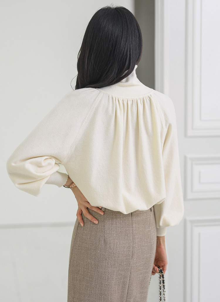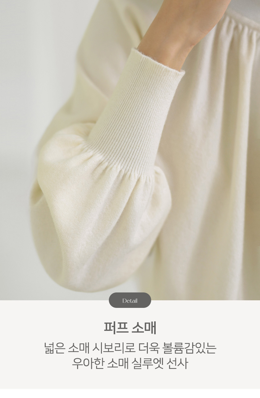 뷰엘 셔링 드레이프 볼륨소매 버튼 터들넥 니트