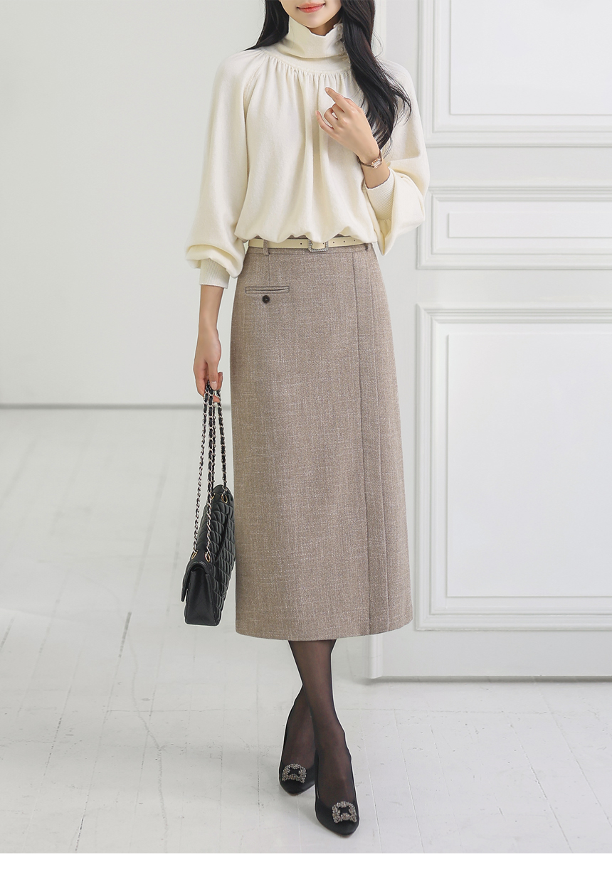 우아한 드레이프 실루엣을 완성해주는 터들넥 니트예요 :)