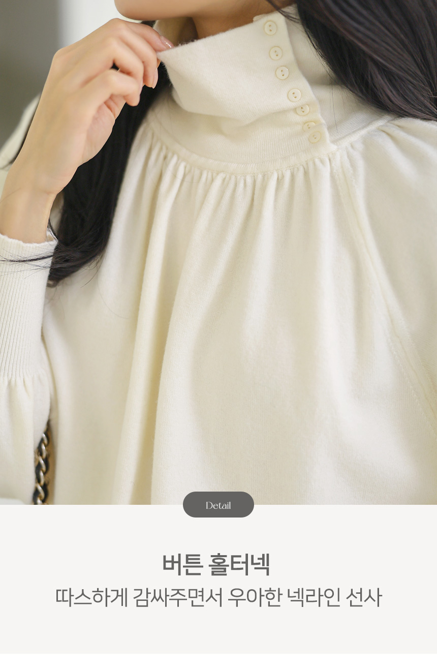 버튼 디테일이 더해진 터들넥 디자인으로