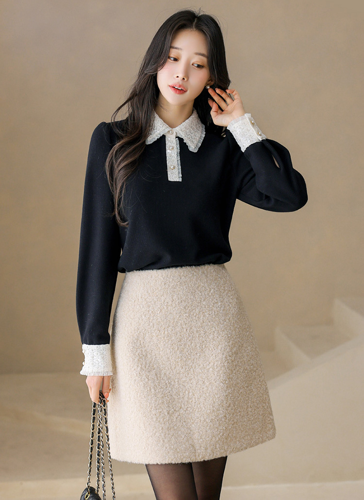 뽀글뽀글 양털 텍스쳐가 시선을 사로잡는 미니 스커트에요