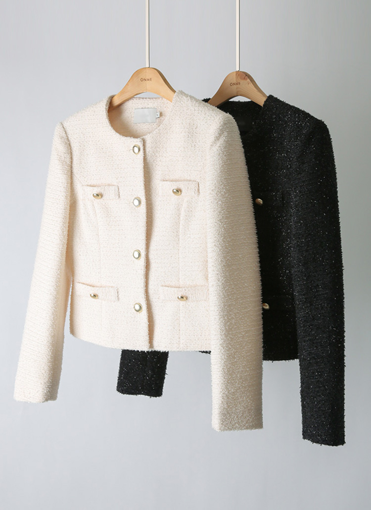 럭셔리한 무드의 절정을 선사하는 트위드 자켓이에요